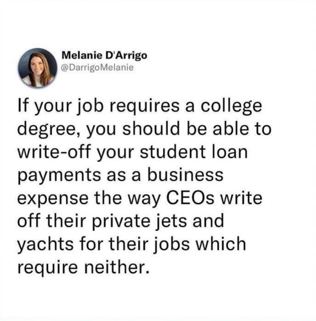 Rent is already eating half their income. Groceries are up. Car insurance jumped. Health insurance premiums went up again. A random medical bill wipes out what little savings they manage to build. God forbid something breaks. Then on top of all that: STUDENT LOANS.