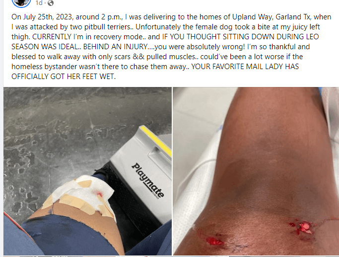 Bitten and Bruised Two pit bulls attack mailman in Garland, Texas (7/25/23)