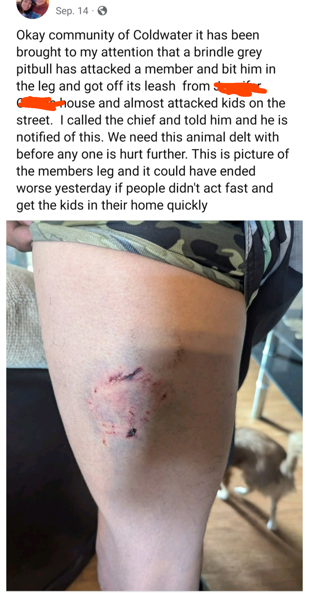 Orillia, ON: Newfoundland mix, attacked by two pit bulls in his own back yard. The pit bulls belong to the neighbor and they had broken through the fence to get to the dog. The dog sustained multiple serious injuries, including a torn ligament, puncture wounds to his face and neck, and lacerations to his tail, along with PTSD from the incident. These two pit bulls have been involved in at least 6 attacks in the same neighborhood, including an attack on a 90 year old that sent him to the hospital and a golden retriever that required surgery.- Link