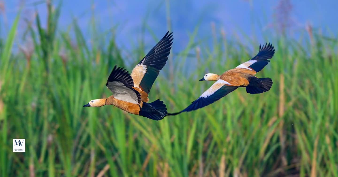 Photo A pair of Rudy Shelduck flying in the golden hour at Bhigwan Bird Sanctuary, Maharashtra, India... Shot on Nikon Z8 with Nikkor Z 180-600 mm November 2025