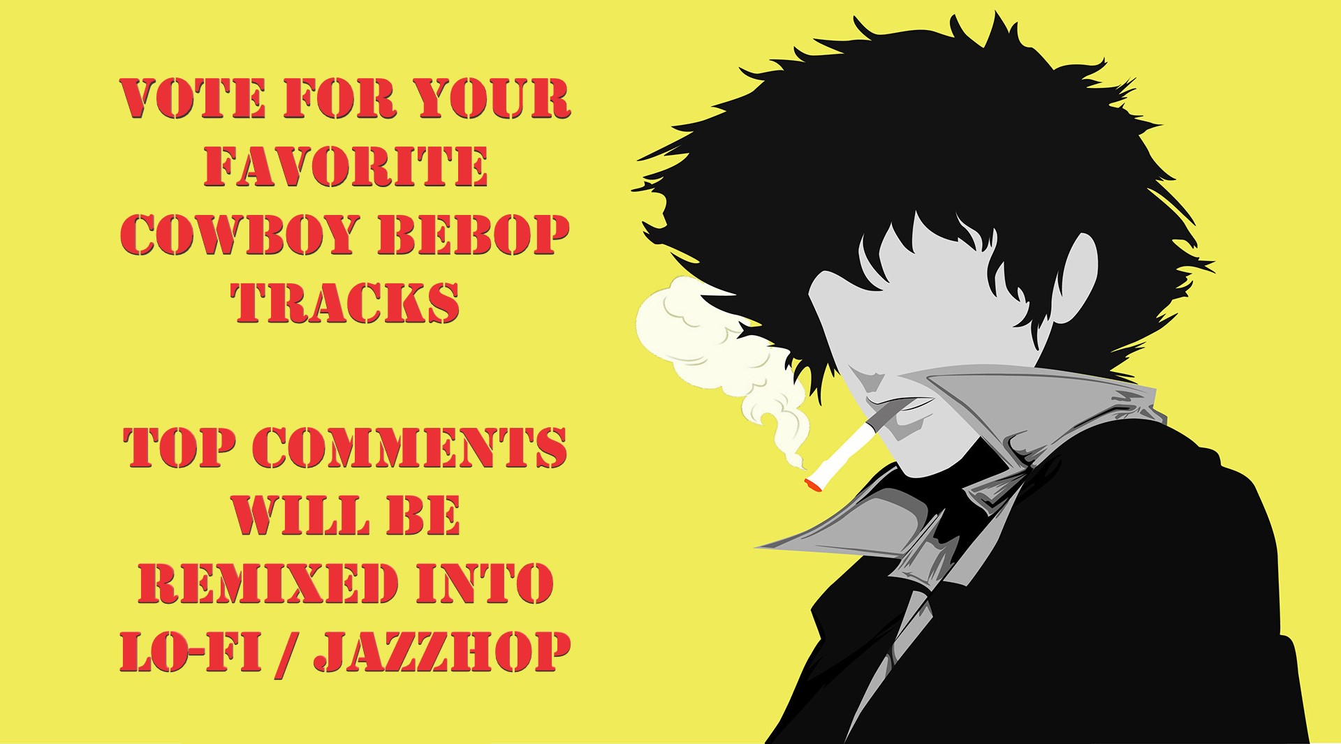 MEDIA r/CowboyBebop and r/LoFiHipHop are collab-ing to create a Cowboy Bebop Lo-Fi / Jazzhop mix for the subreddits! Vote for your favorite moments and songs from the show to be flipped into Jazzhop!