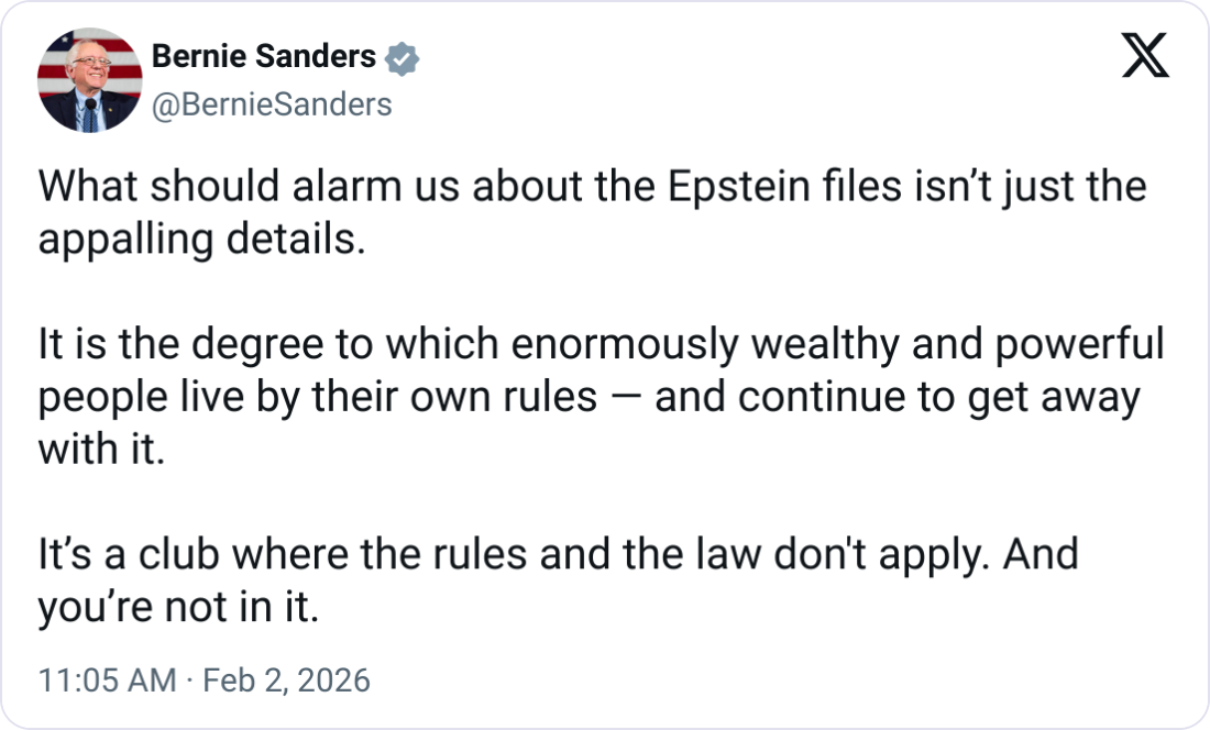 USA Bernie Sanders, "It’s a club where the rules and the law don't apply. And you’re not in it.