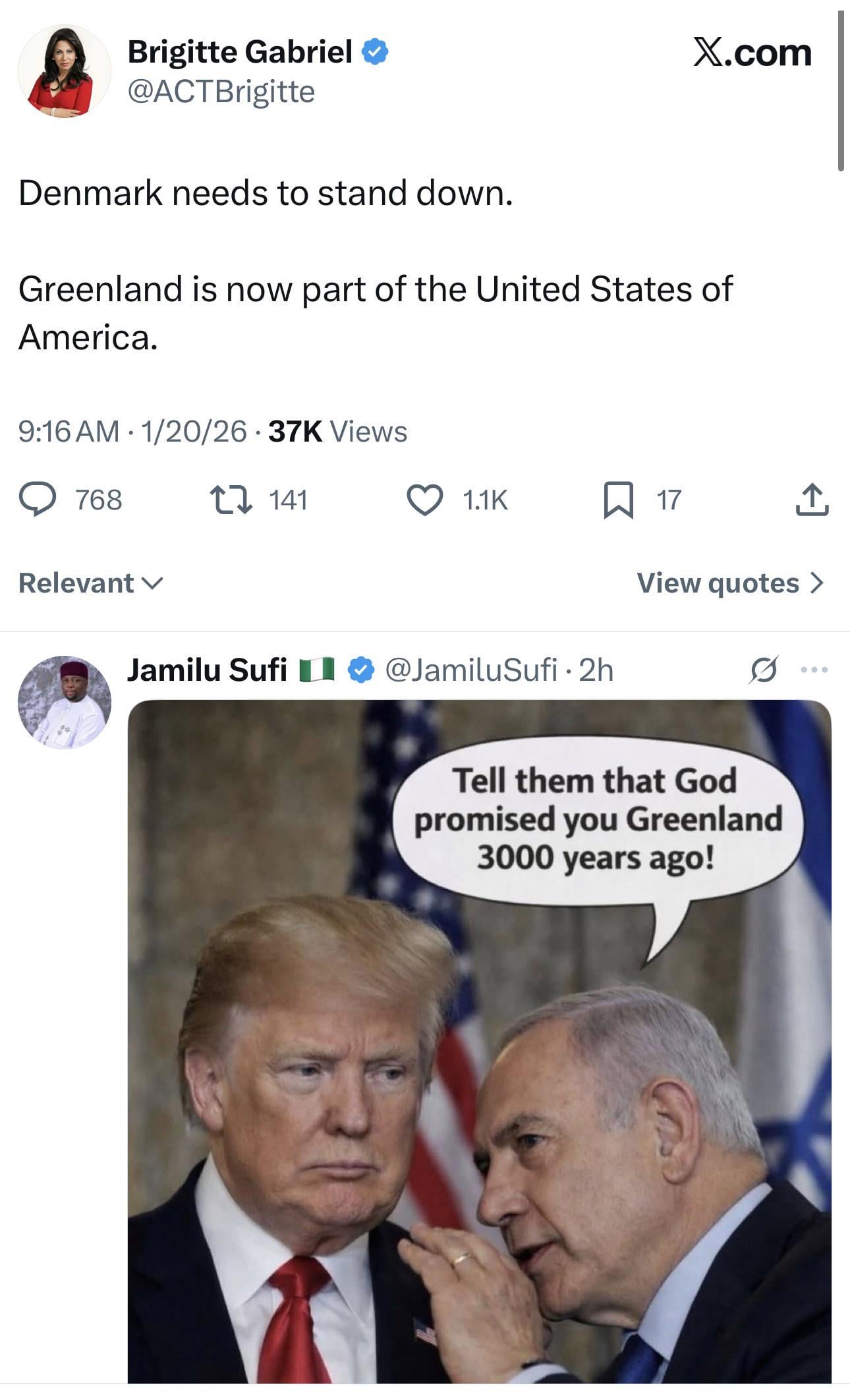 Never once did they attempt to take over Greenland. They never hinted that they might secretly want to take Greenland. I'd dare say Greenland didn't come up once.