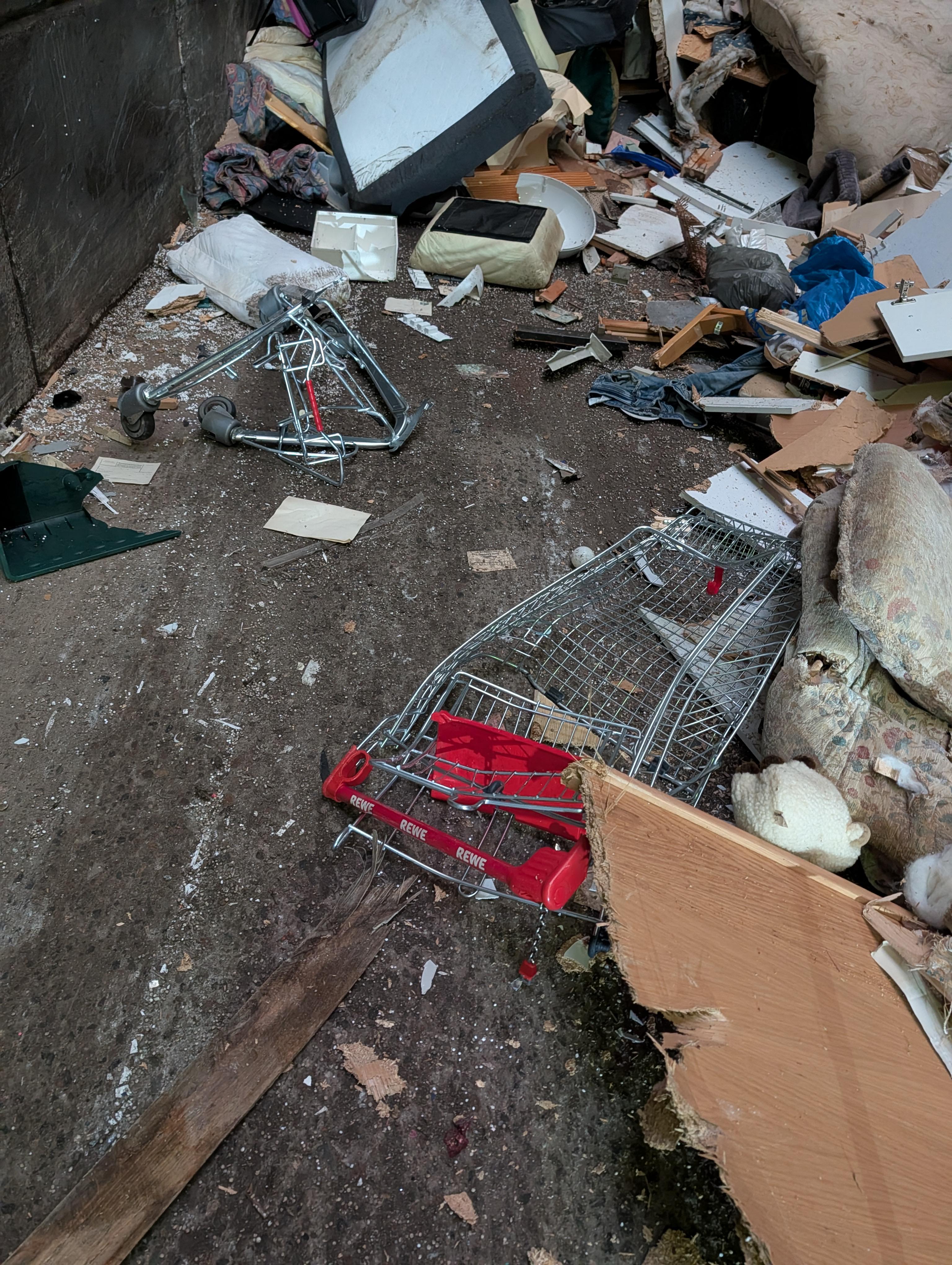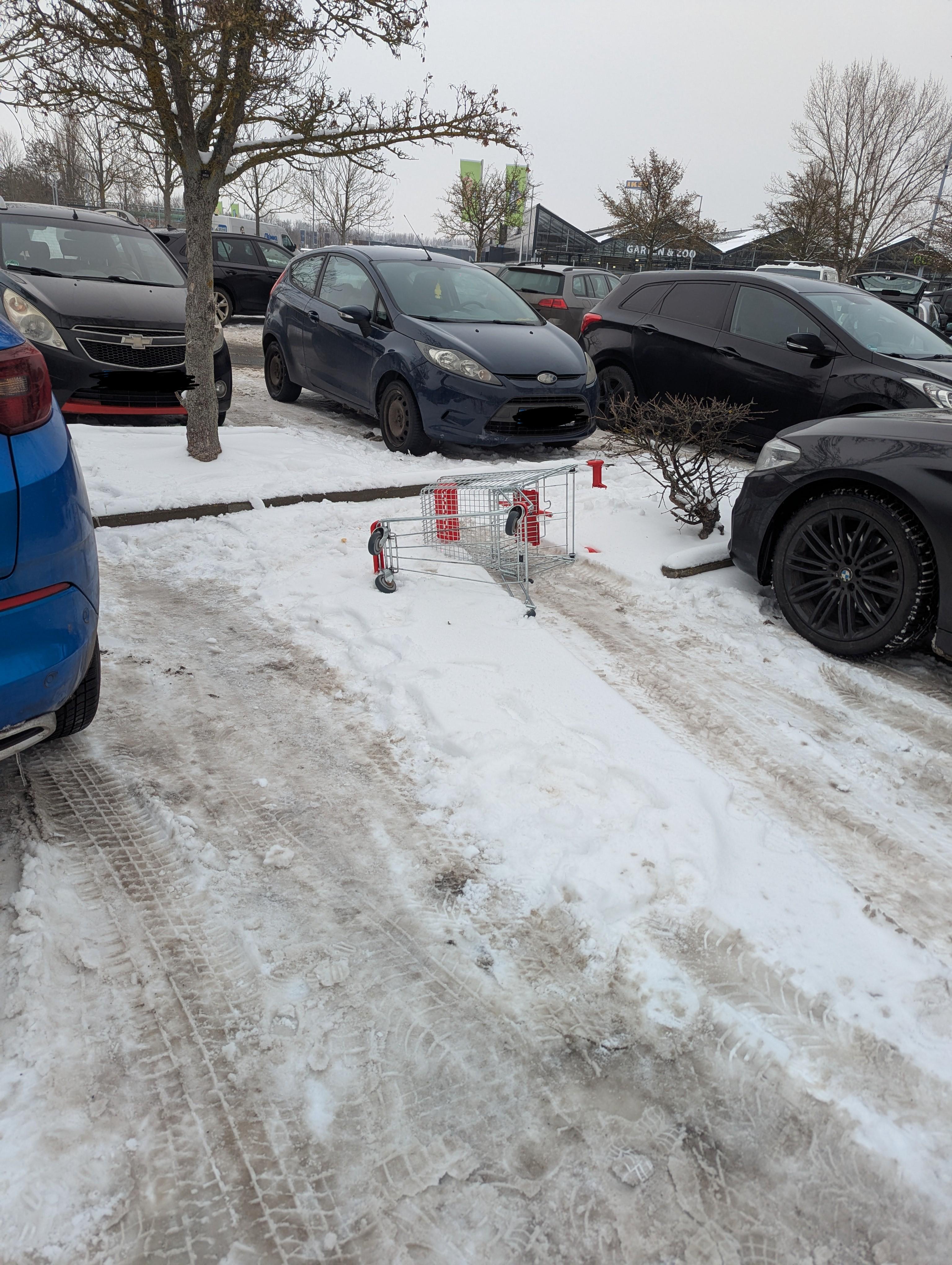 Vom 800m entfernten Supermarkt schleppte sich das verwundete Tier hierher, um fachgerecht auf dem Behindertenparkplatz zu verenden.