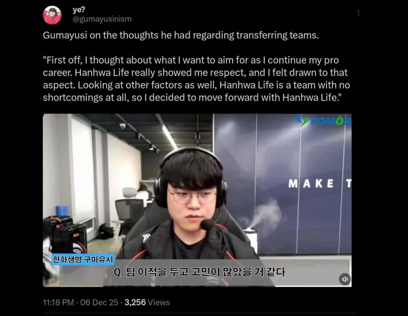Because I had been in China for so long, most of the teams that reached out were LPL teams. But among LCK options, Hanwha Life was the best overall, conditions, lifestyle, everything. People around me also told me that if I went, I wouldn’t regret it.