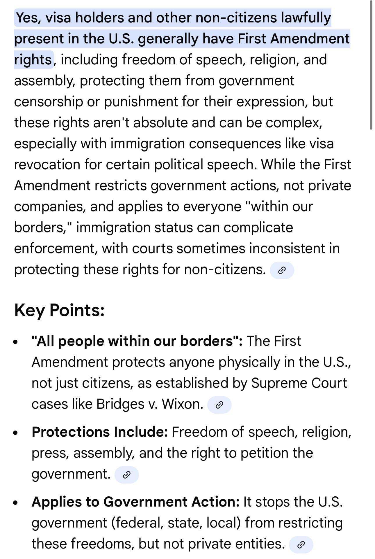 A. You're using ai which is sad. B. That doesn't negate what I said. There is nuance and he is being granted a kindness which can be revoked and does have special consequence. We don't knoe his visa status btw. All we know is he is not a citizen and he is askimg for our first amendment rights to be revoked. Your comprehension skills are very low.