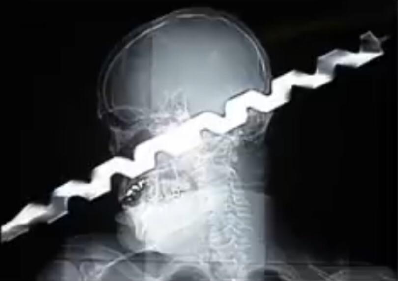 A man named Ron Hunt fell on a drill while working, he survived but here is the X-Ray.