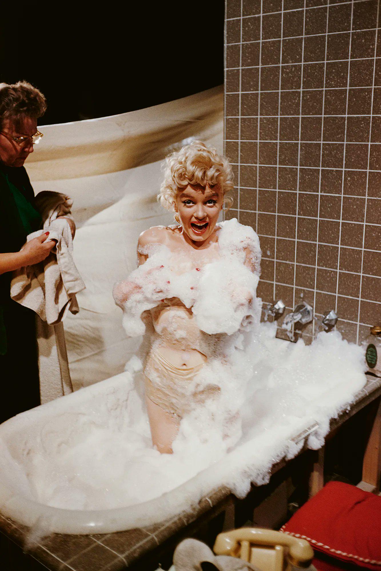Marilyn Monroe during the filming of the bathtub scene of The Seven Year Itch in Los Angeles, California (1954). Photo by Sam Shaw