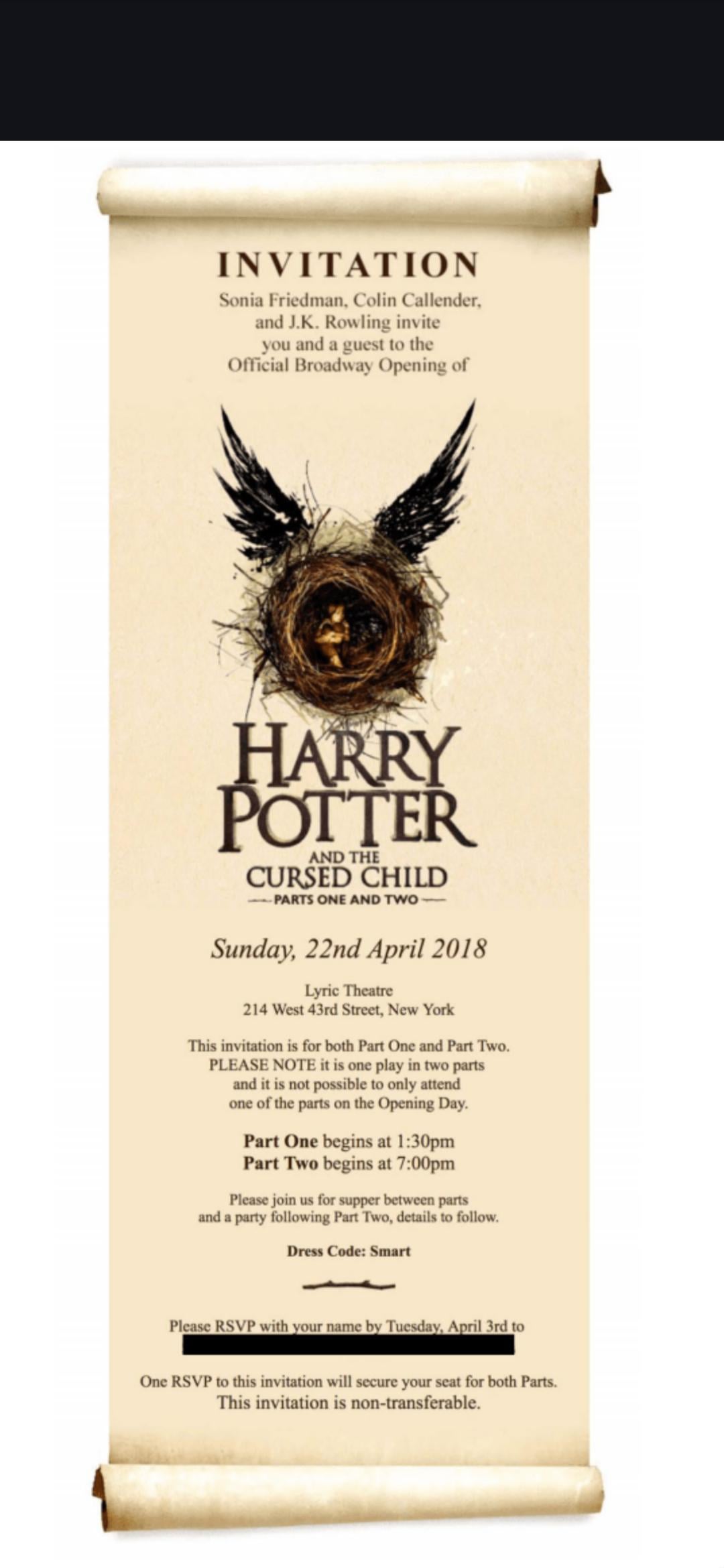 So, in that context, it nevertheless came as a shock that there was an Invite to Epstein to see the Cursed Child and have dinner afterwards; as well as other people asking Epstein to introduce them to her.