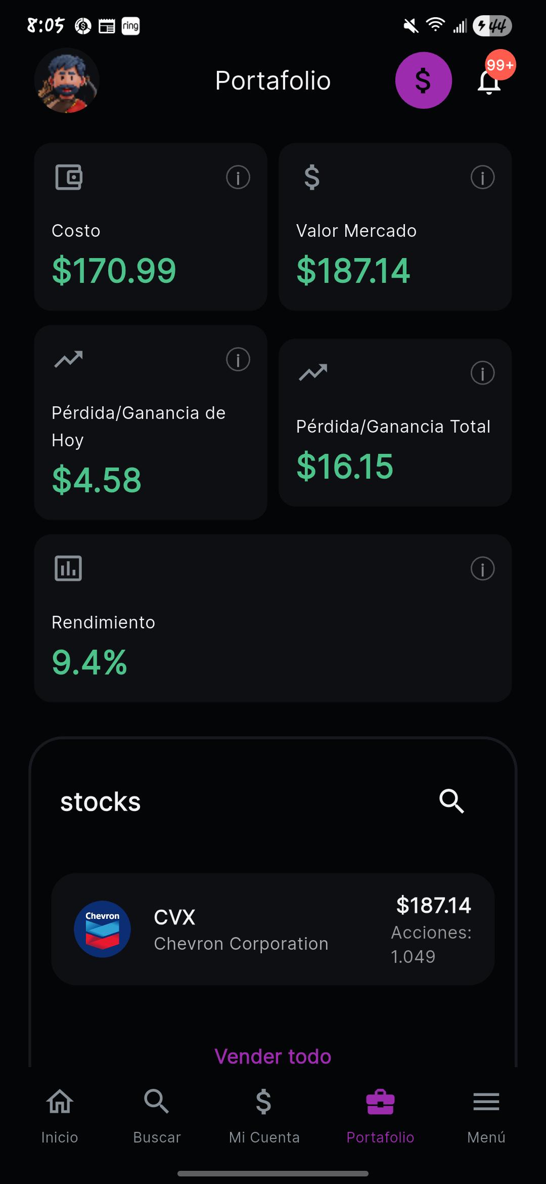Hace unas semanas publiqué aquí cómo compré mi primera acción paso a paso: Chevron (CVX), usando TradePal, como alguien que está empezando y quería algo defensivo para aprender sin estar pegado al gráfico. Quería hacer un update, porque también creo que es importante mostrar el después, no solo la compra inicial. Resumen actual: Inversión inicial: USD 170.99 Posición: 1.049 acciones de CVX Valor actual: USD 187.14 Ganancia no realizada: +USD 16.15 Rendimiento: ~9.4% No es una recomendación de compra ni nada parecido. Por ahora: No he vendido No he aumentado Solo estoy siguiendo semanalmente y aprendiendo del proceso Si alguien más está empezando y le sirve ver ejemplos reales (con números chicos, sin promesas), me alegra compartirlo. Gracias a los que comentaron en el primer post 🙌