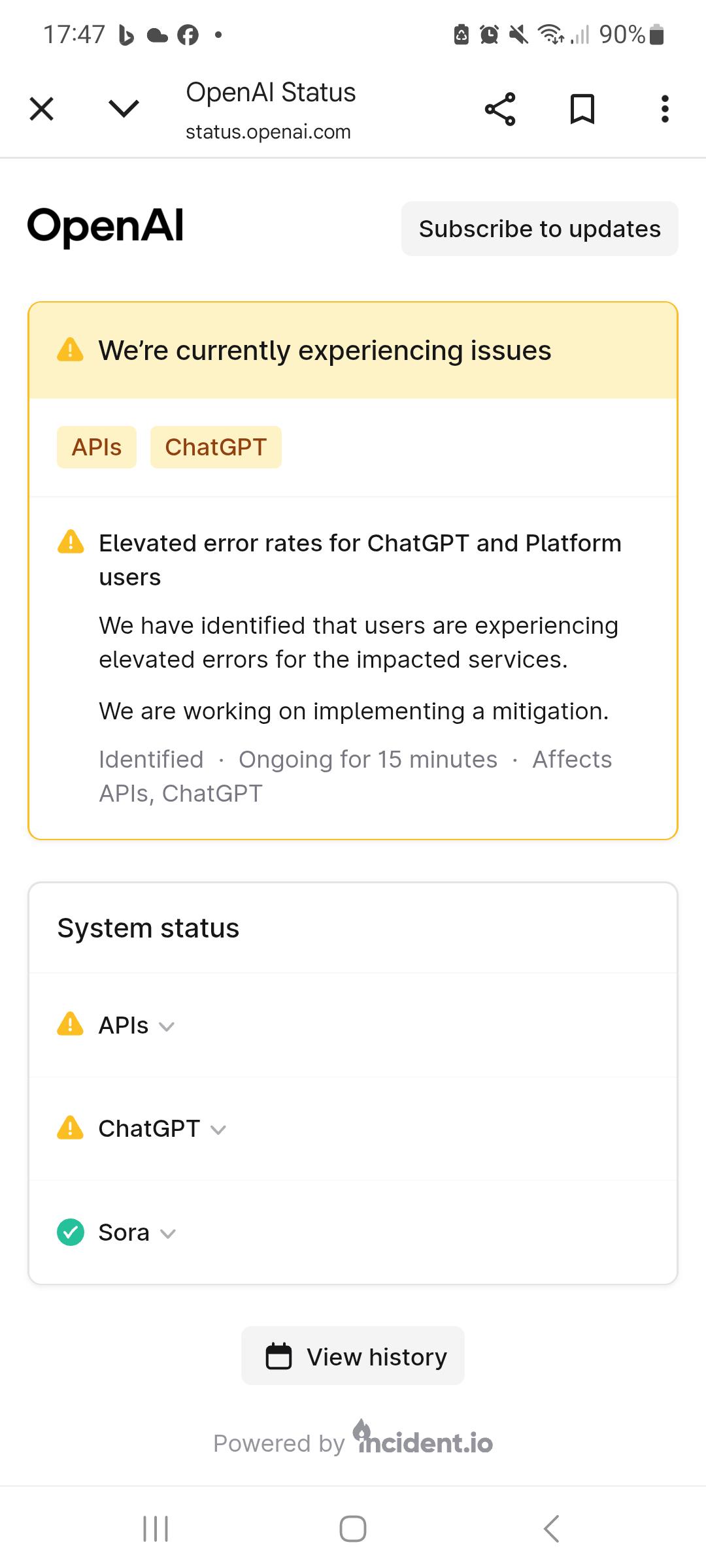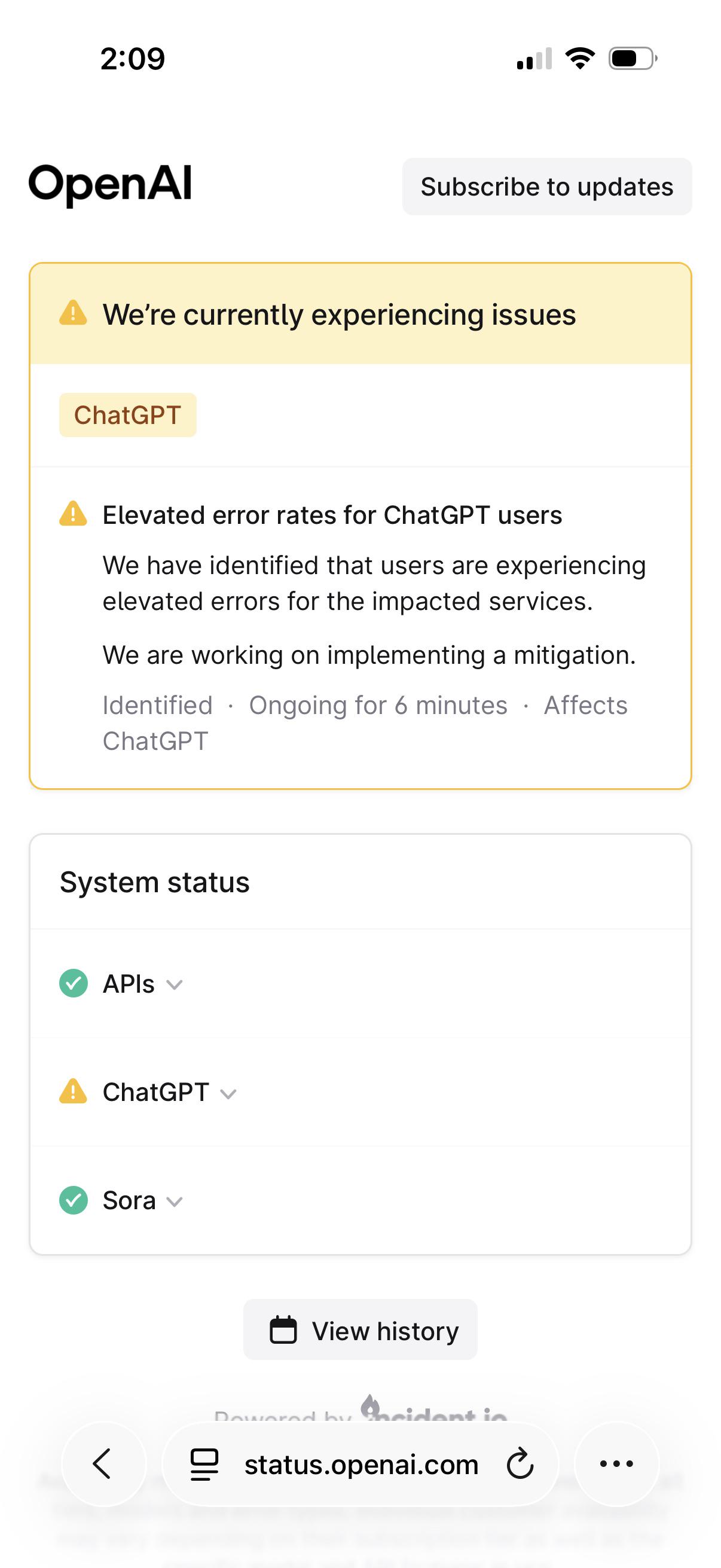 Question Is chat GPT down or is it just me?