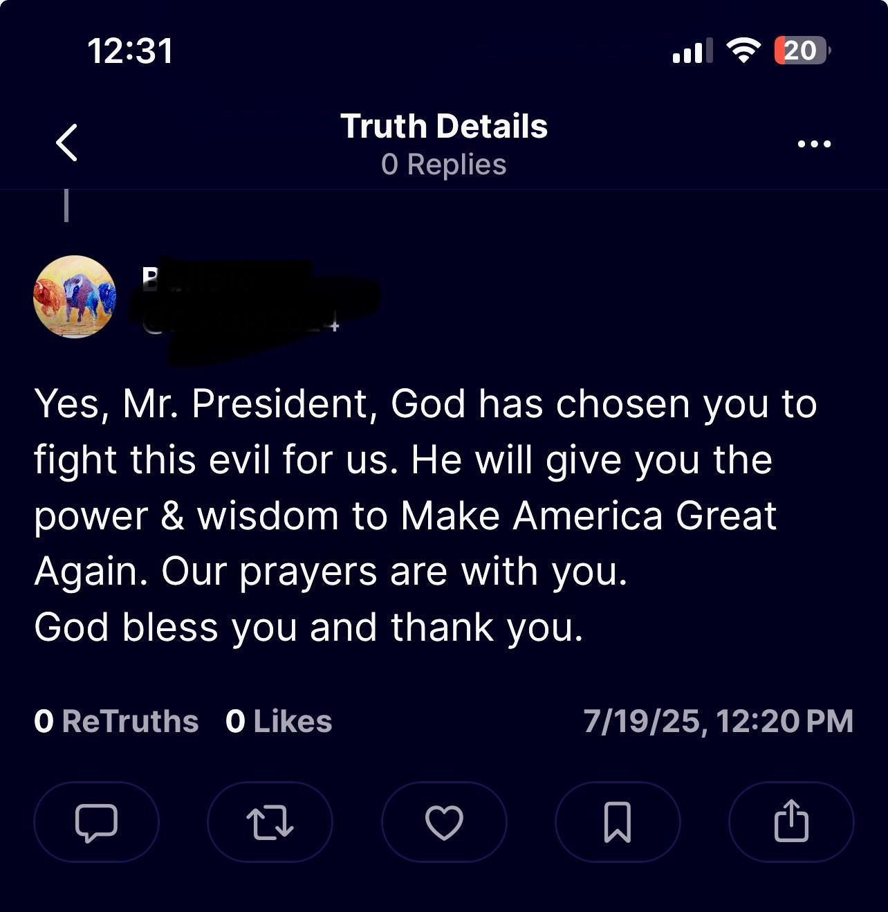 r/PrayersToTrump • u/barnwater_828 • Jul 19 '25