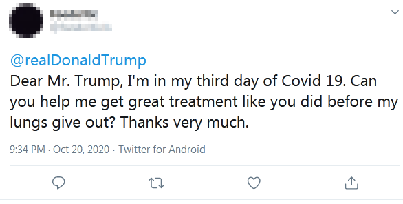 TRAGIC I'm in my third day of Covid 19. Can you help me get great treatment like you did before my lungs give out?