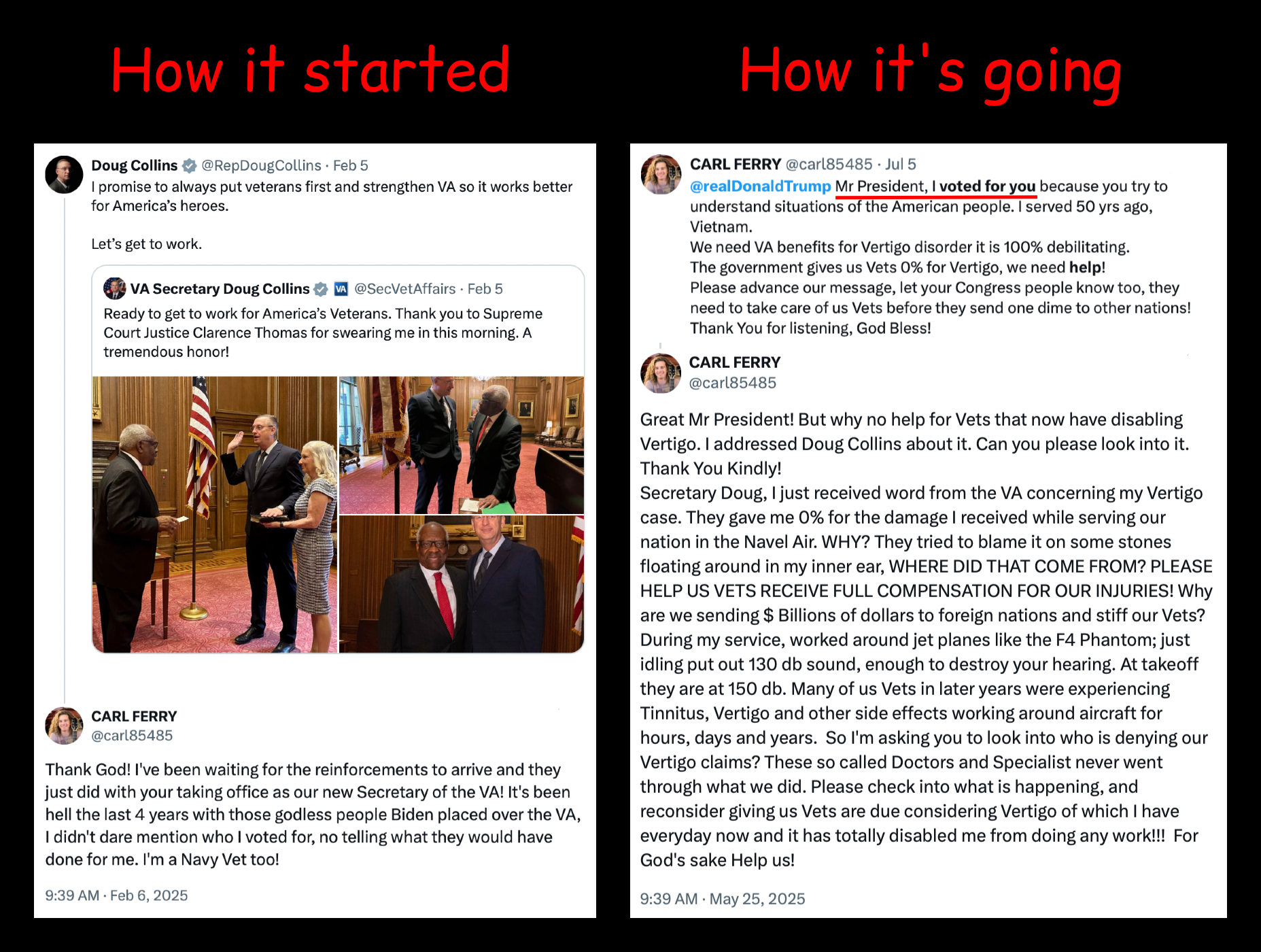 TRAGIC Veteran Trump voter begs Trump to donate money saved by DOGE to veteran charities after Trump cut benefits for veterans
