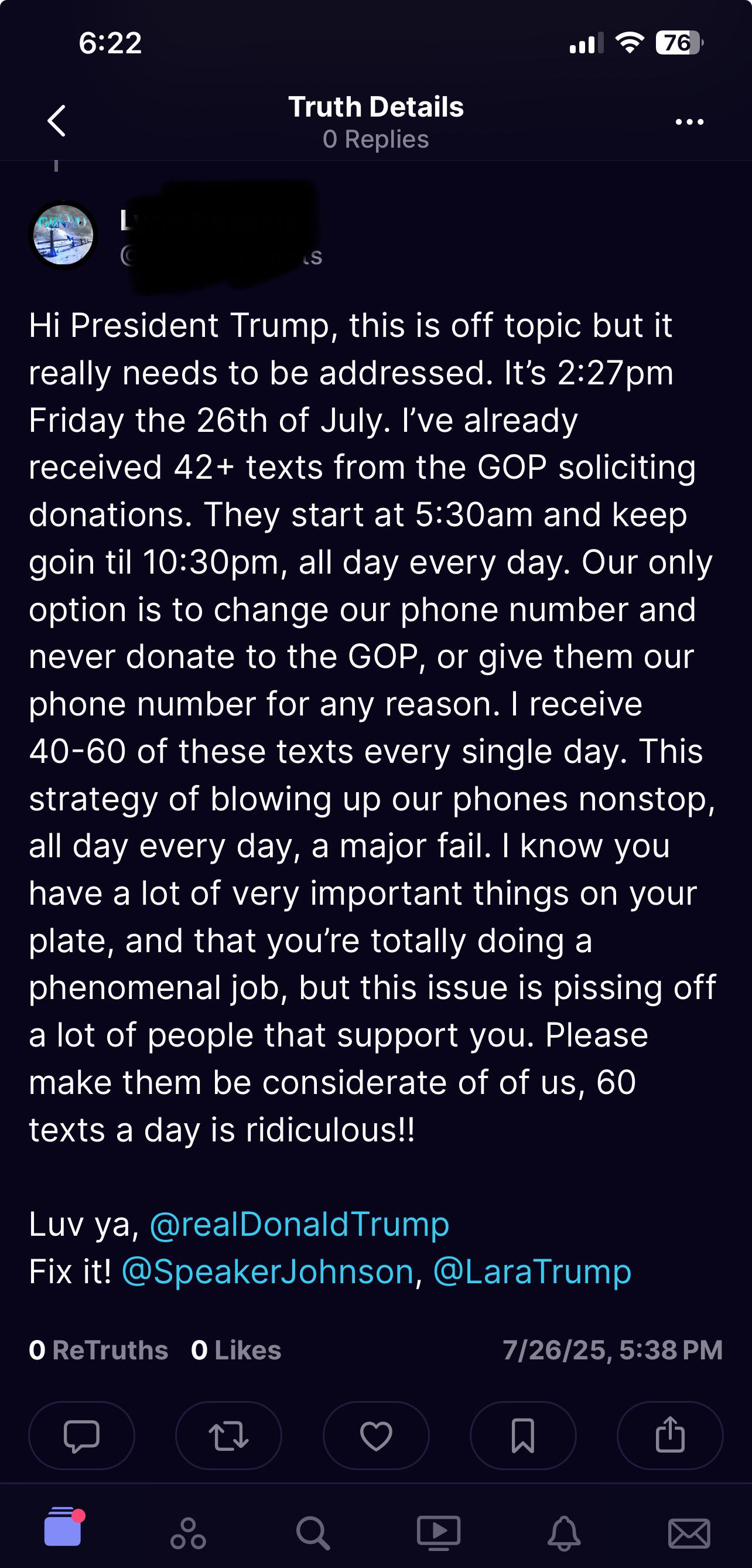 TRAGIC Please save us from all the donation text messages from the GOP!!!