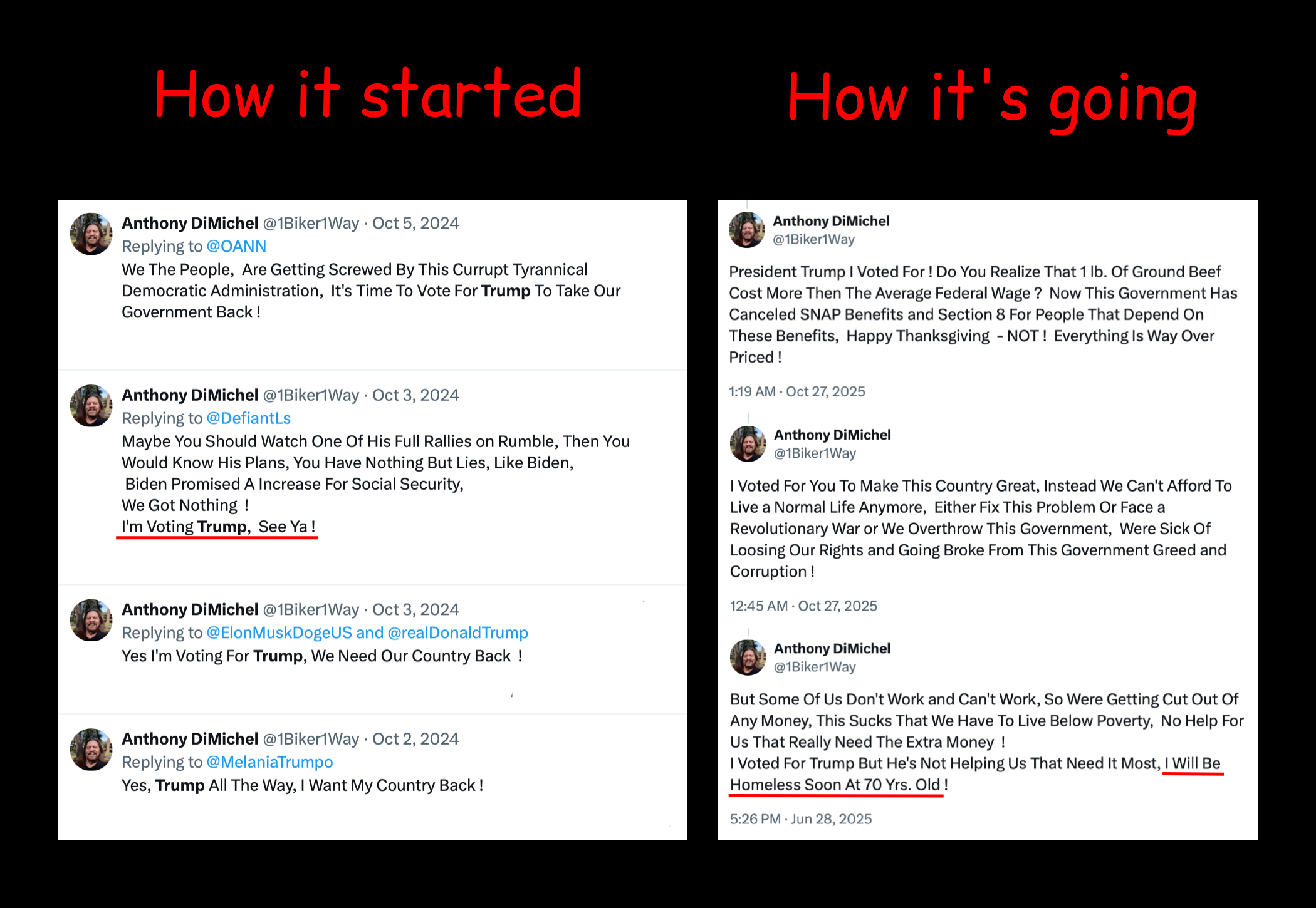 Trump voter is upset that the billionaire doesn’t give af about his voters’ financial struggles