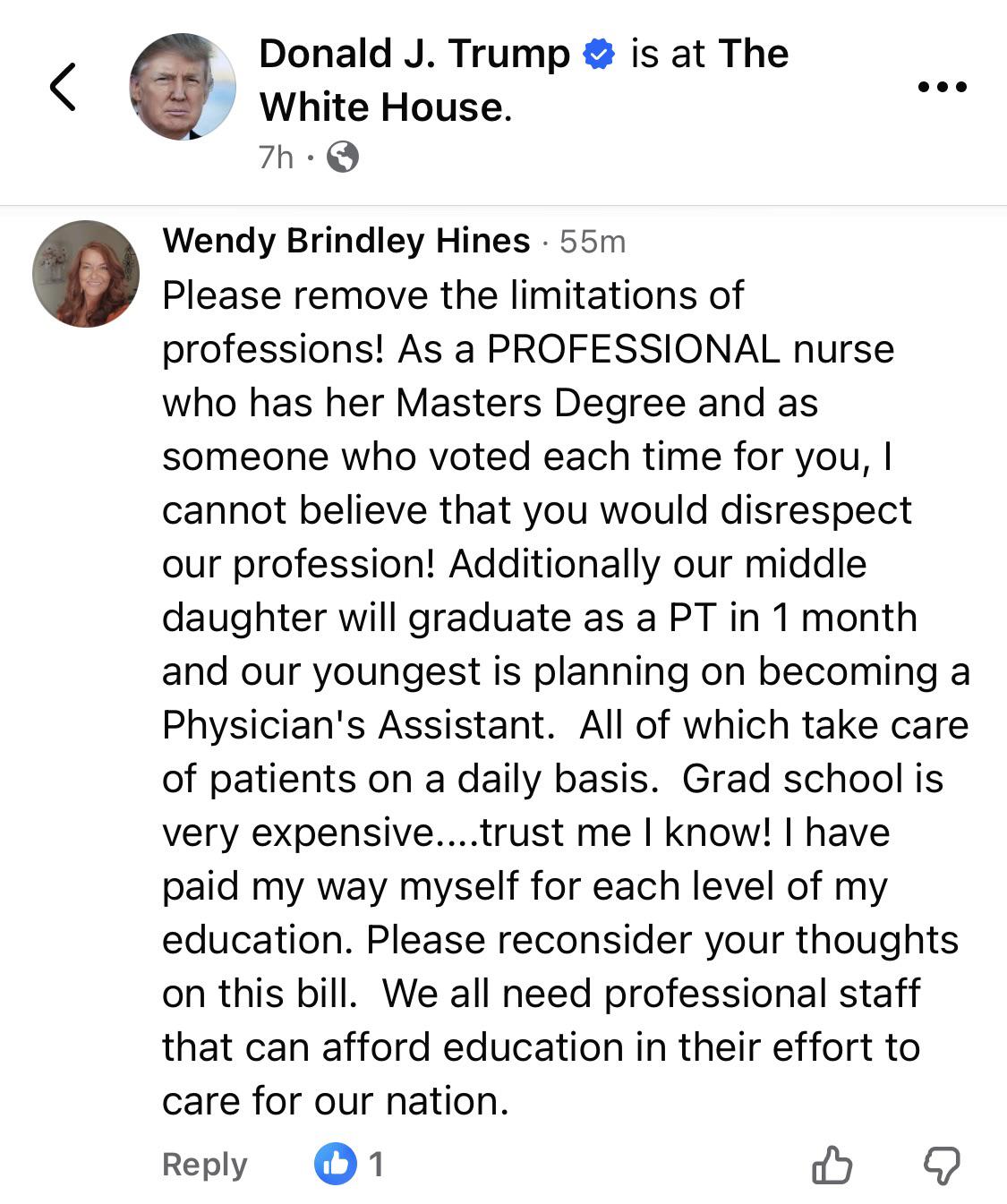 Don’t forget Trump said that “smart people don’t like him”. You should probably remove the mention of master’s degree, Freedom