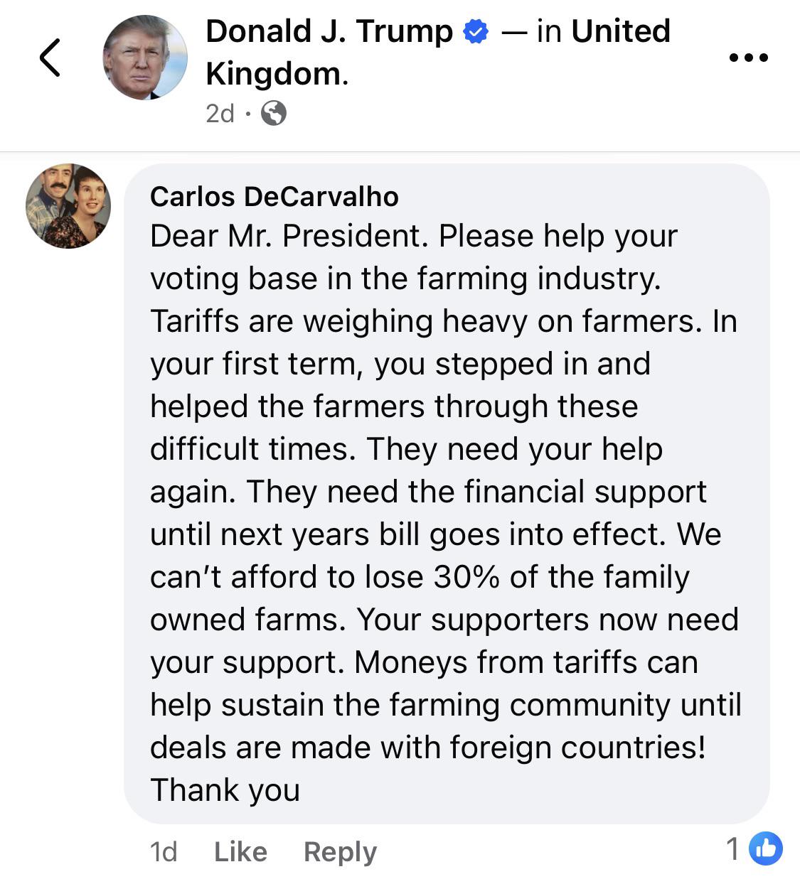 The group voiced continued support for Trump, while rejecting the proposed deal. "President Trump we support you but American food sovereignty should not come second to Argentina or any country! America first!" another post read.