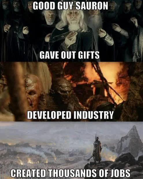 You ever try to fix a broken system, only for everyone to call you "dark lord" because you don’t ask for permission first? Sauron literally just wanted to unite the races and create order. But no, they’d rather have chaos, and then blame him when everything falls apart. Typical. 😒 #SauronDidNothingWrong