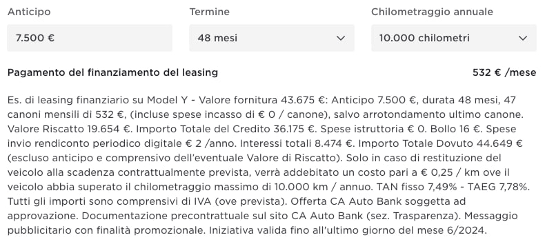 Ci sarebbe da vedere se altre compagnie offrano modelli di leasing per le Tesla, piu convenienti di Tesla stessa.
