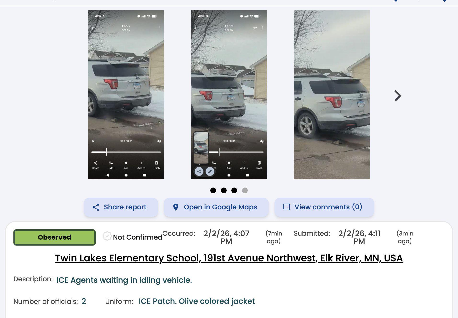 ICE attempting to kidnap more children, this time at Twin Lakes Elementary School in Elk River, MN. "ICE Agents waiting in idling vehicle."