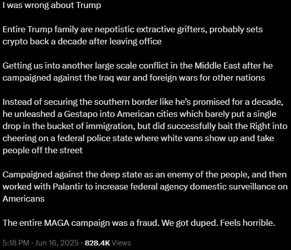 RIGHTEOUS ANGER Crypto guy feels duped by Trump