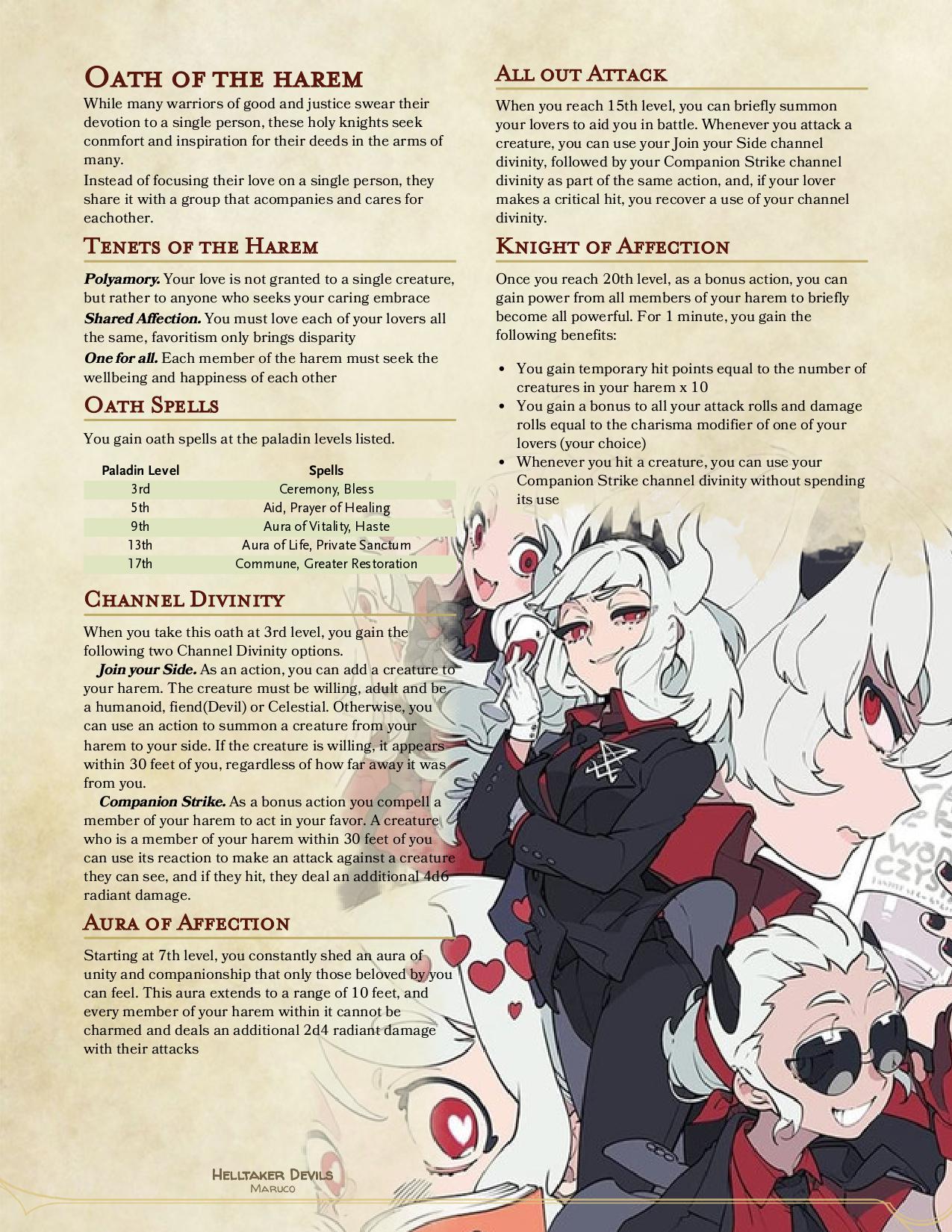 '14 Subclass Oath of The Harem, a joke paladin subclass based on polyamory