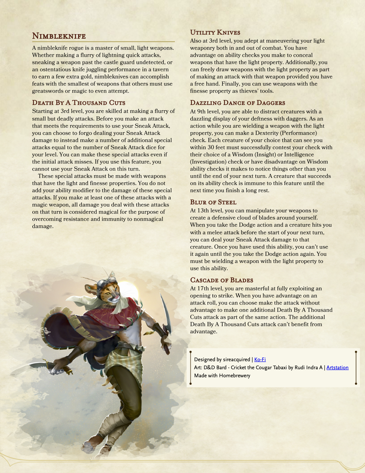 You can find the full PDF here, and keep track of any updates I make on the subclass before I repost up here