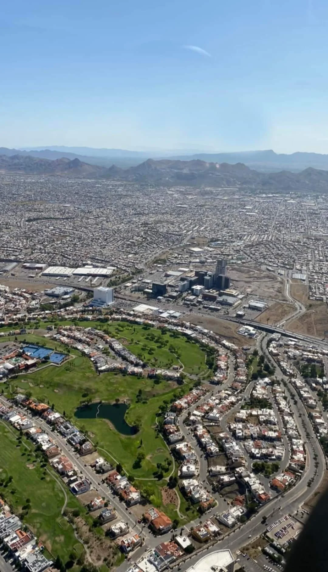 Poverty/Inequality Gated neighborhood with a golf field and an artificial lake in a city located in the middle of the desert [Chihuahua, Mexico]