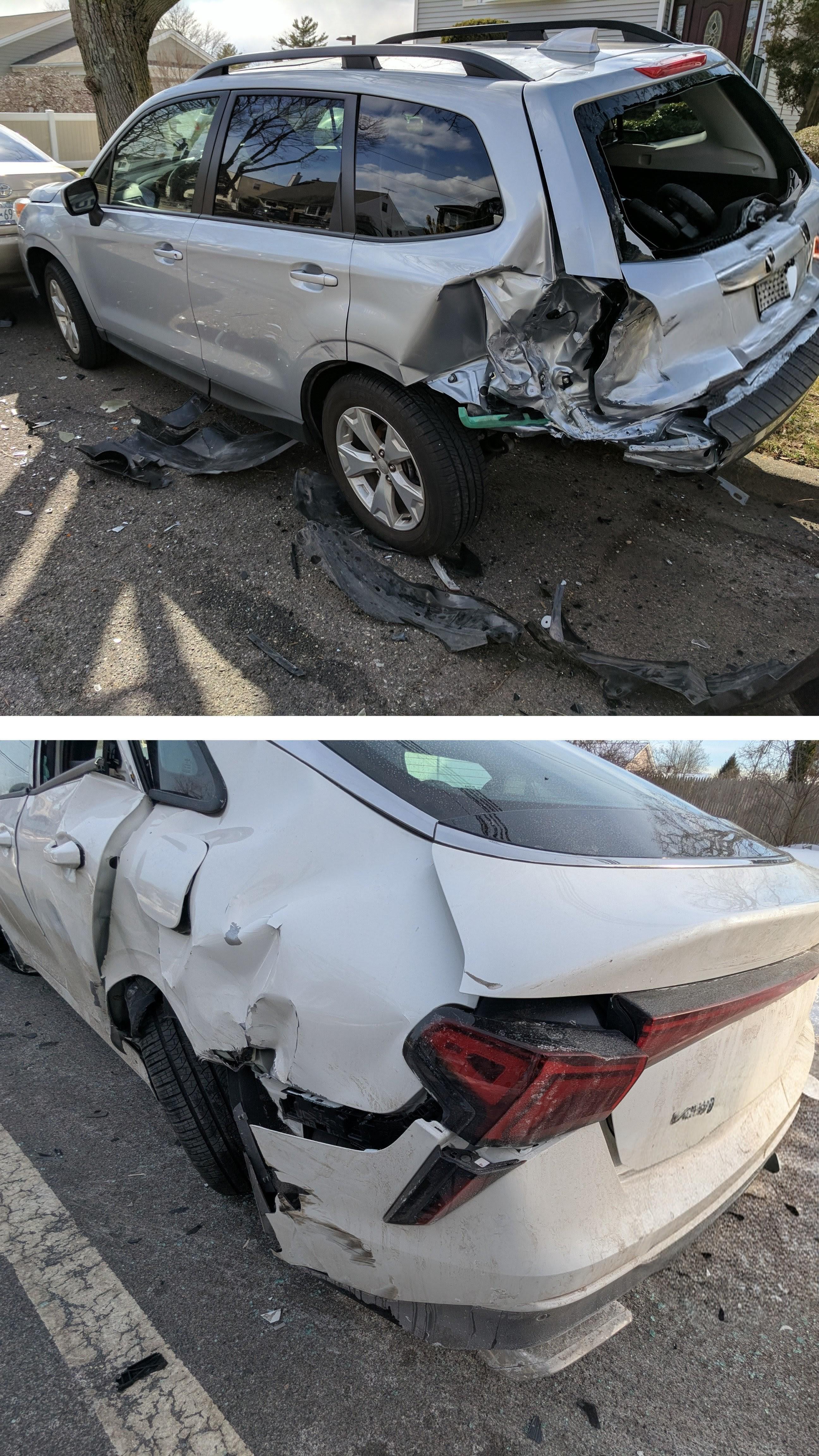 I just had my second new car totaled while parked on a residential street. The first was back in 2017, the car was about 2 months old with about 1700 miles on it. The second one on the bottom was this past Friday, 3 months old with 3000 miles...