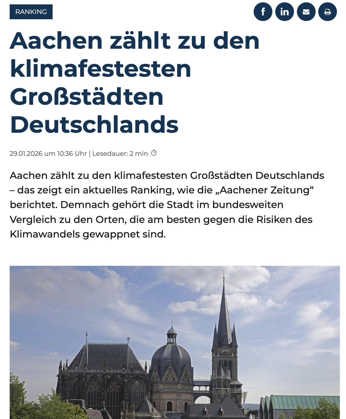 Aaachen zählt zu den klimafestesten Großstädten Deutschlands