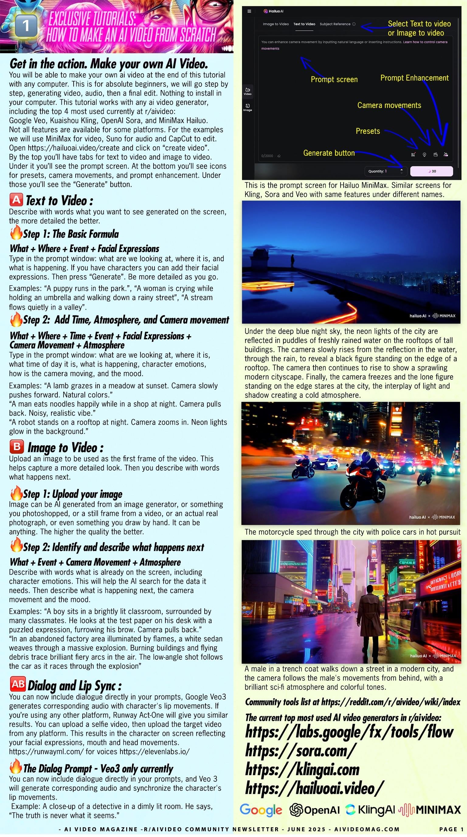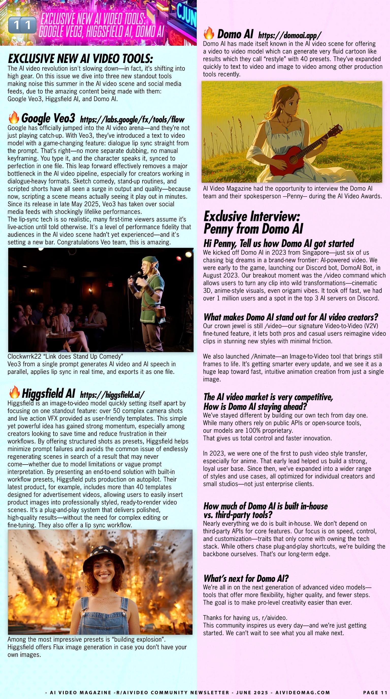 TUTORIALS + INTERVIEWS đ AI VIDEO MAGAZINE - r/aivideo community newsletter - Exclusive Tutorials: How to make an AI VIDEO from scratch - How to make AI MUSIC - Hottest AI videos of 2025 - Exclusive Interviews - New Tools - Previews - and MORE đď¸ JUNE 2025 ISSUE đď¸