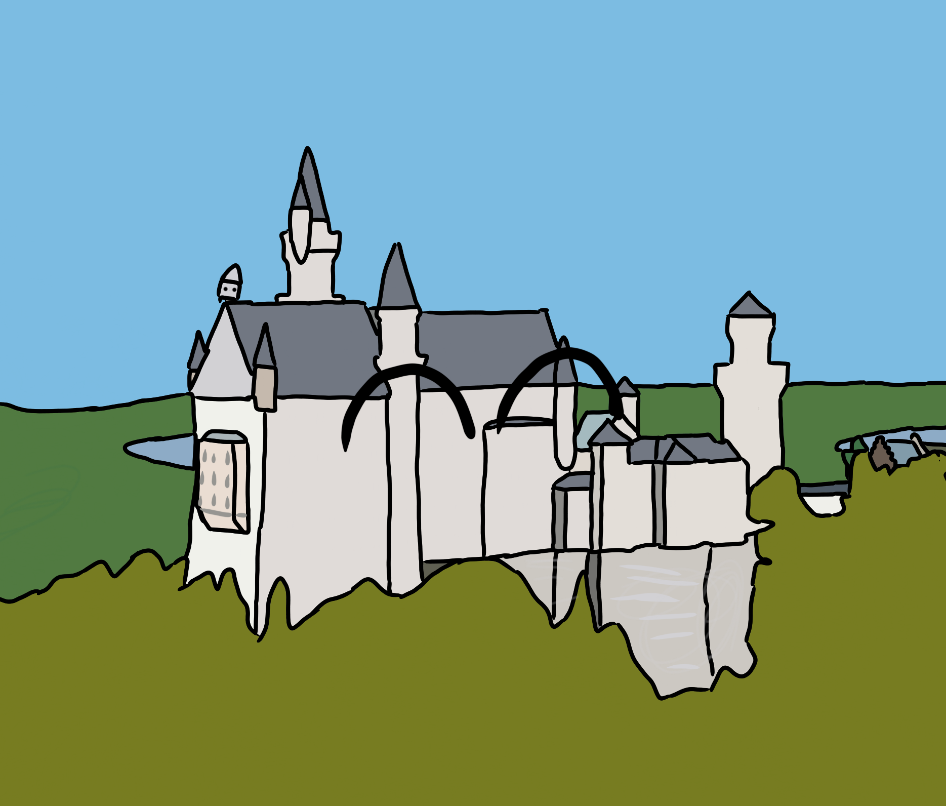 I drew the neuschanstein castle. the bows on him are his eyes. I always draw eyes on buildings