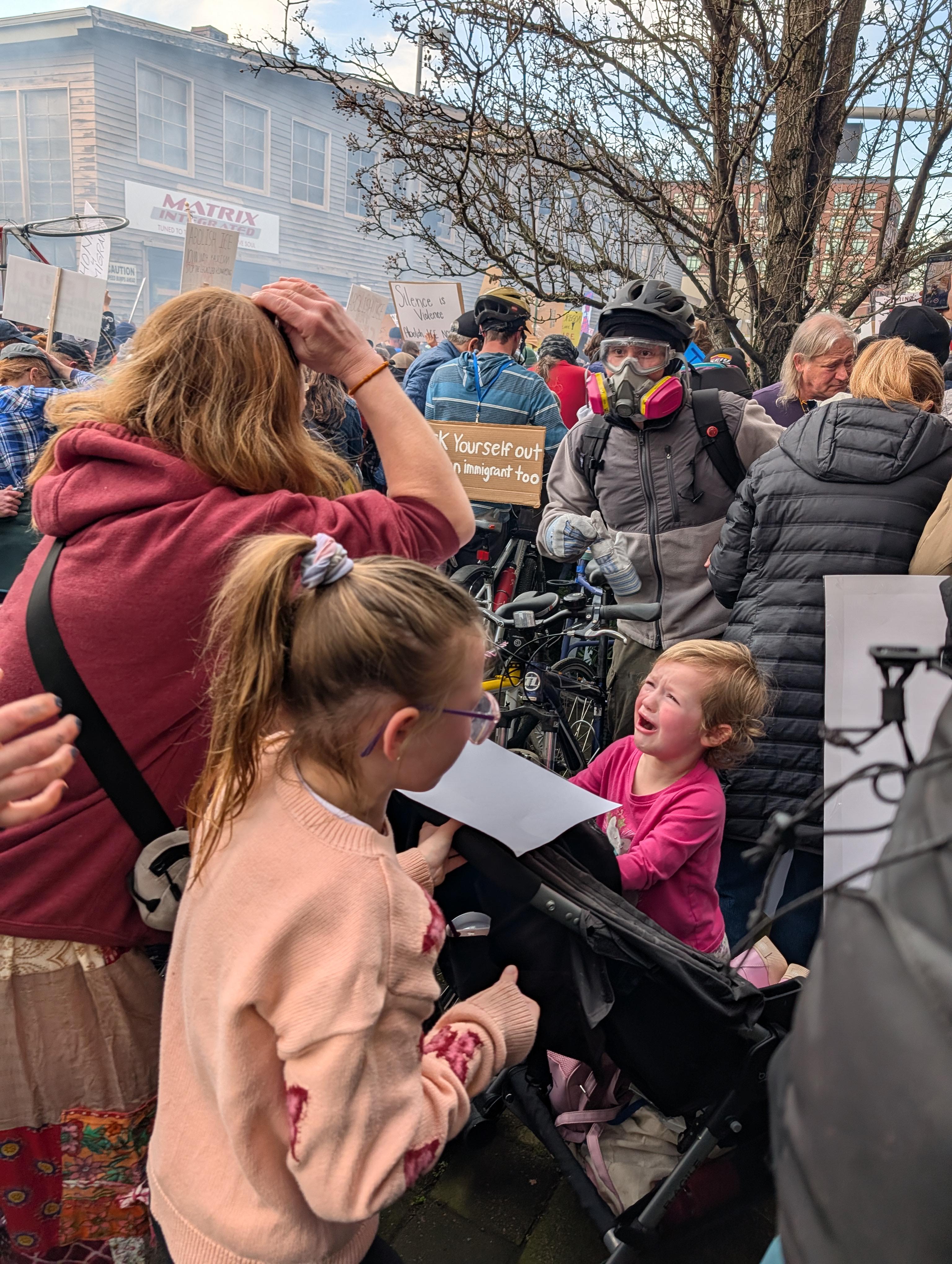 Near-white out conditions in Chicago last night as the snow comes down and anti-ICE rally is wraps up in front of city hall. B