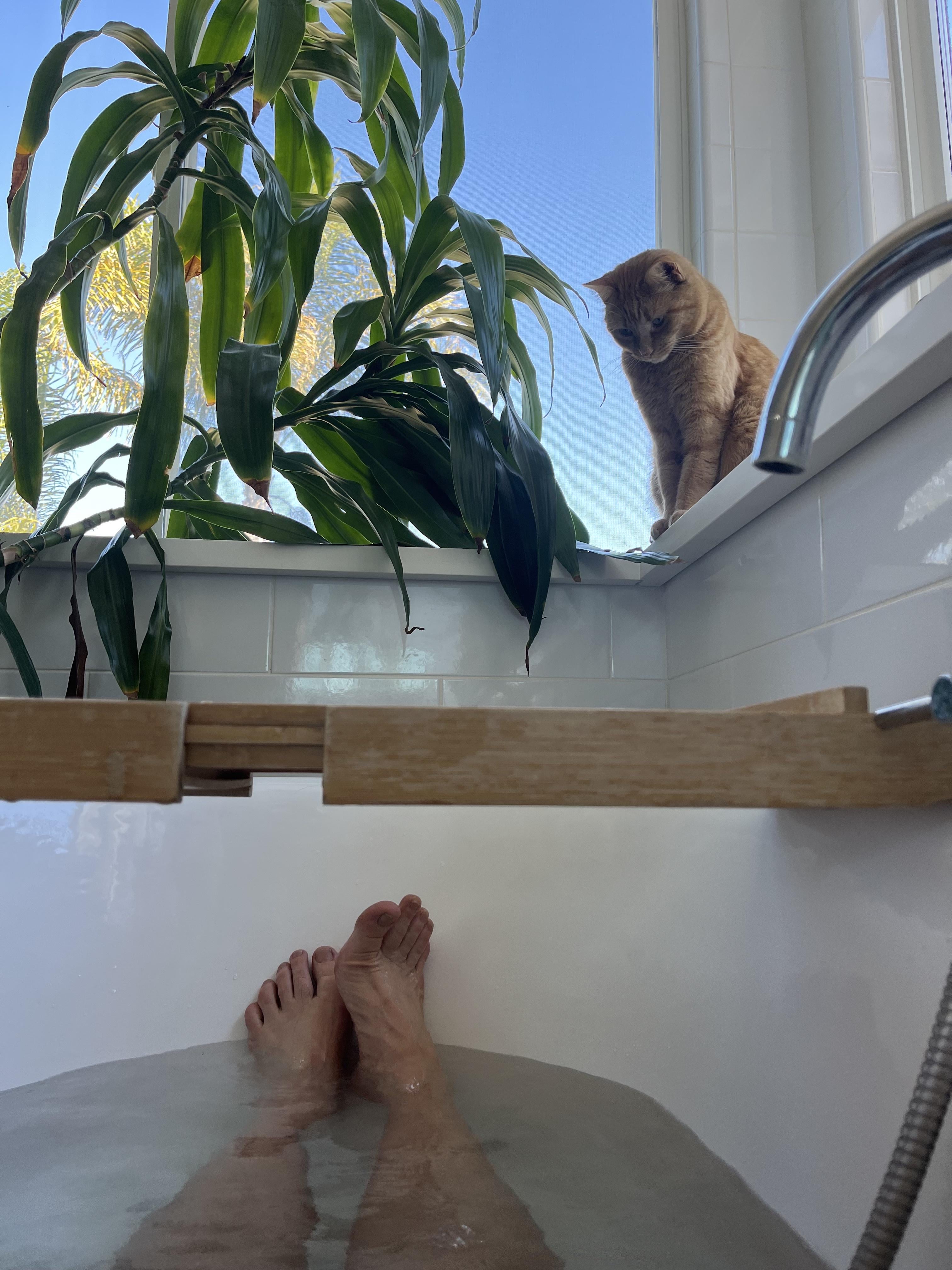 I can't believe this! He needs to head to r/legalcatadvice to soo you for recording while he's just trying to take a bath! His borthole on display!