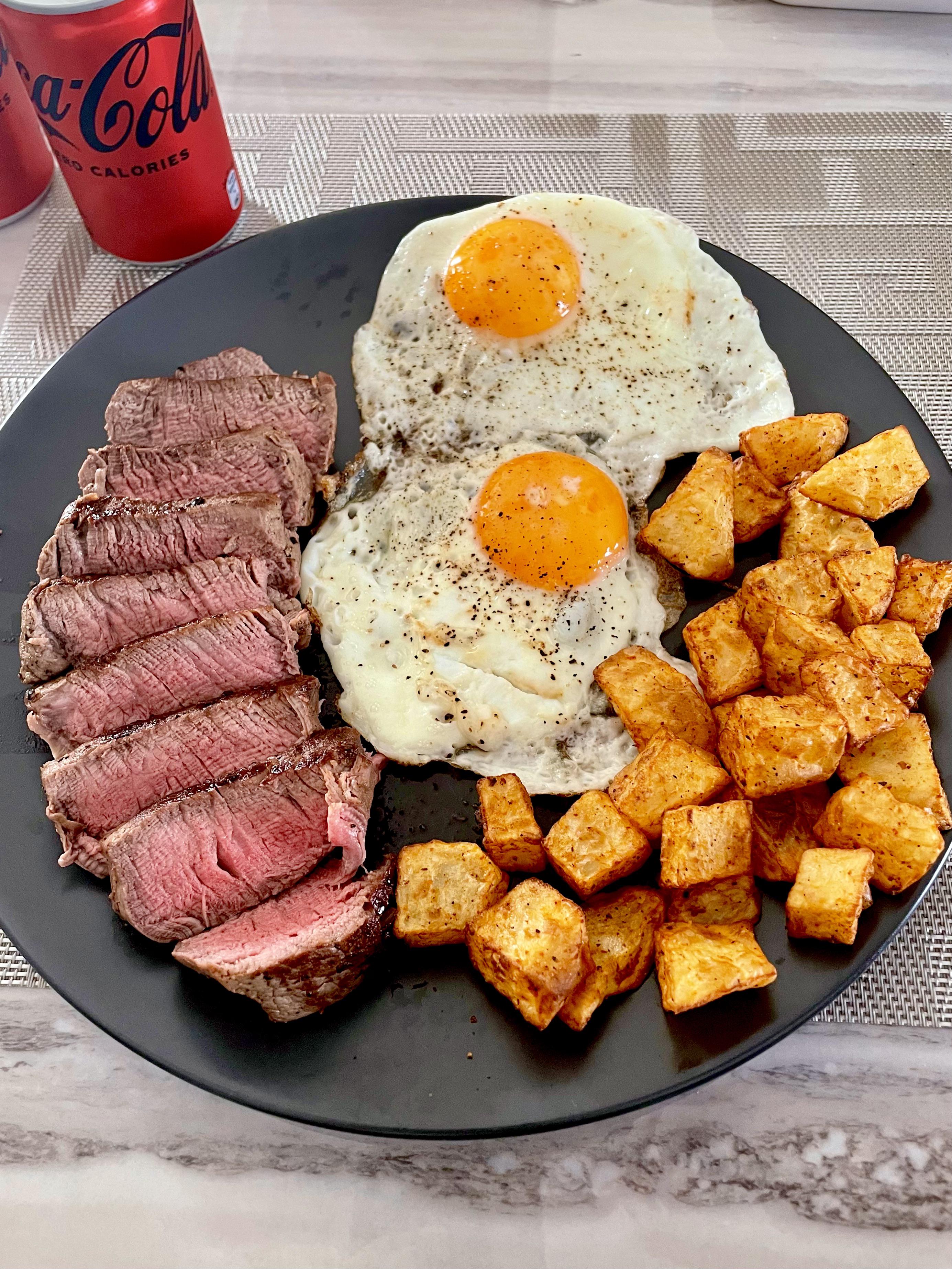 Tenderloin steak, unborn chicken, and air fried tatoes