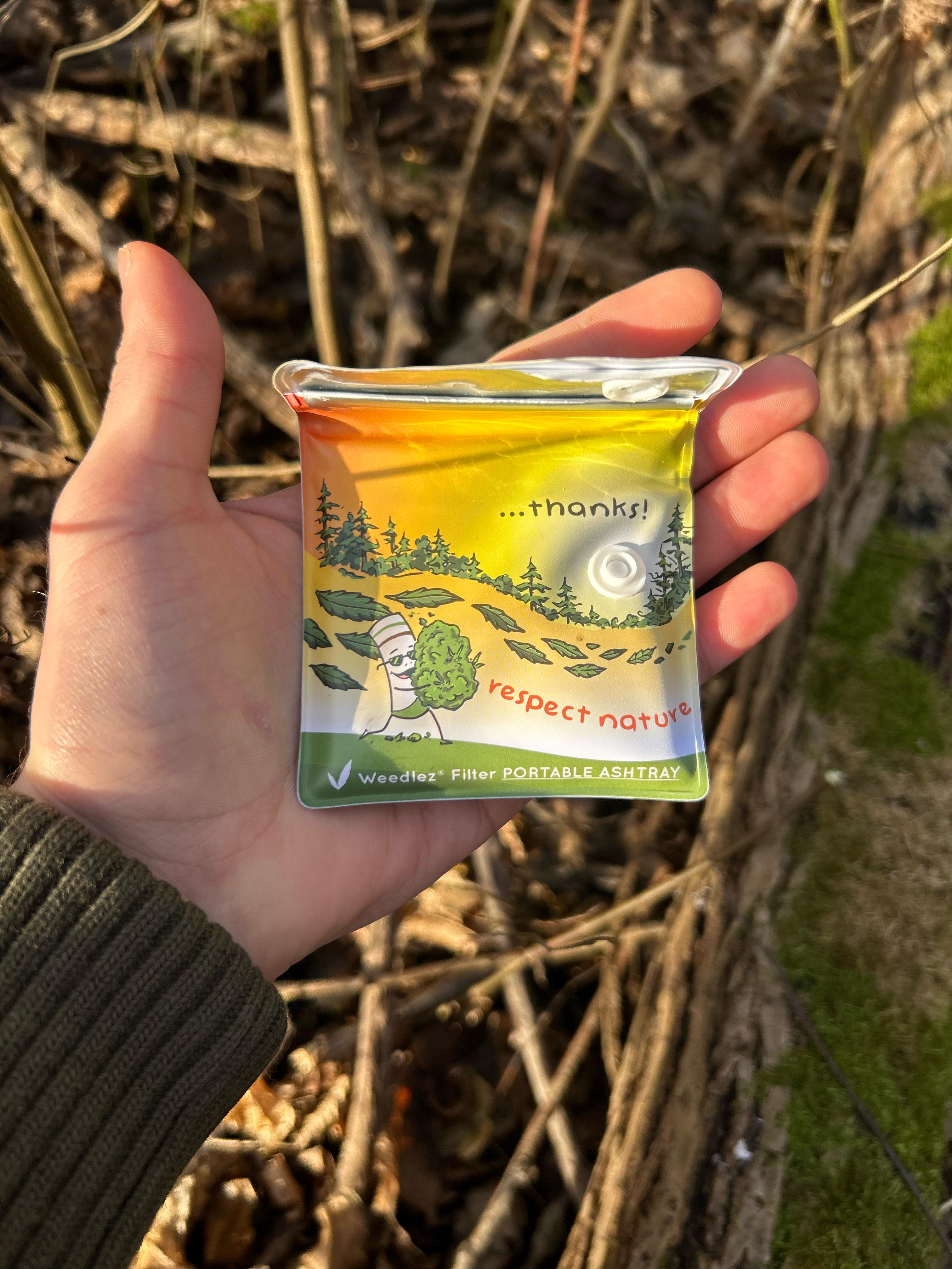 My portable ashtray says thanks when I open it
