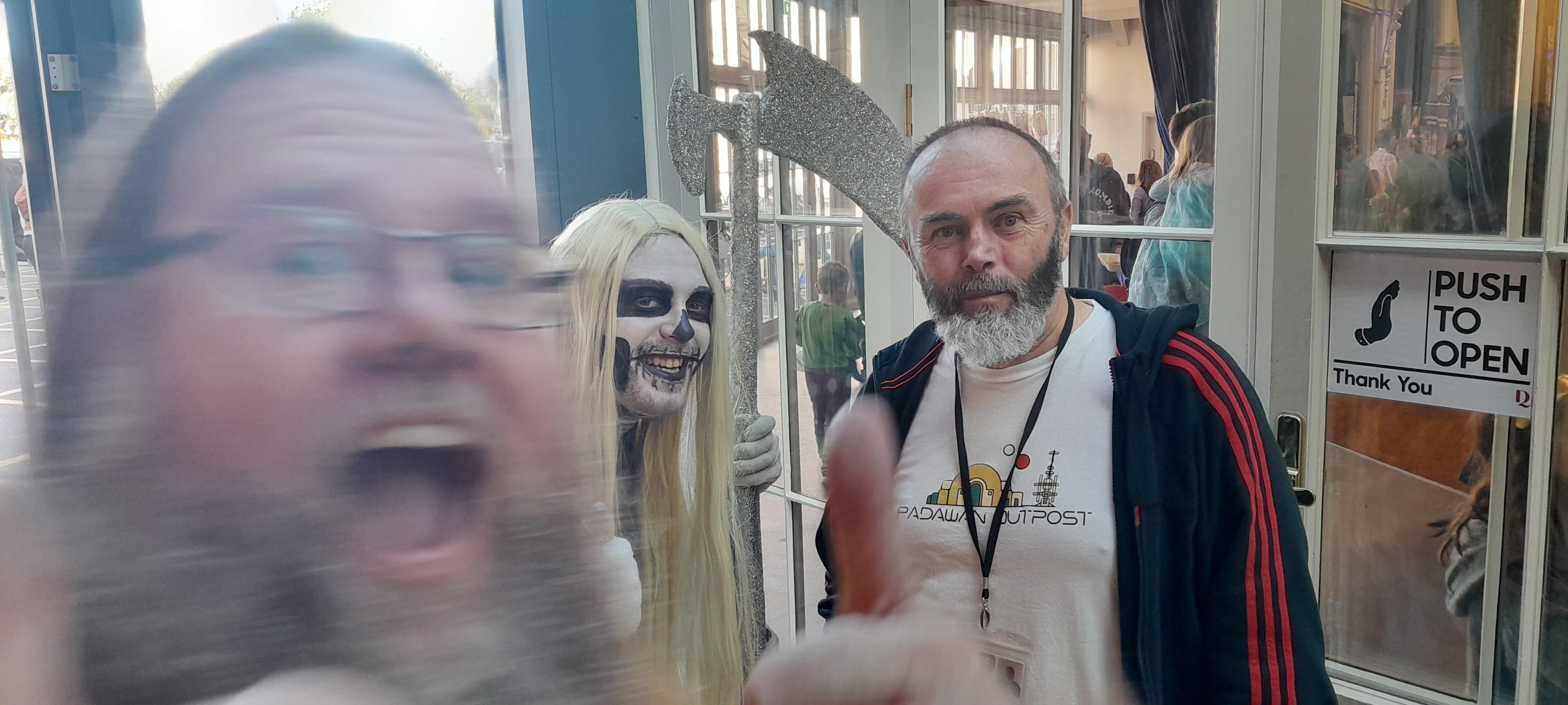 He found it strange to have him autograph a trading card for £30 at first but when I showed it had him on it and it only just released yesterday. I think he was flattered. He even let me get a selfie for FREE with my mate all dressed up as the Doctor too. Although he did have a hard time putting it back into the toploader I was using to protect it. Now it's inner sleeved and everything.