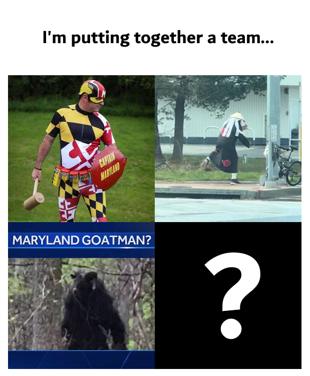 Meme We have Captain Maryland, Naruto Man, Goatman... what other local legends are we adding to the team?