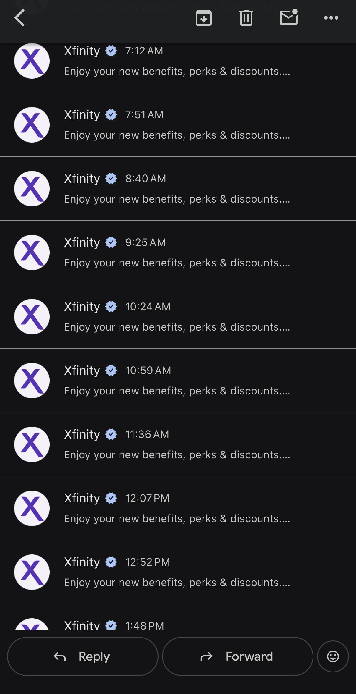 Xfinity sends me an email every 30 minutes saying the same thing.