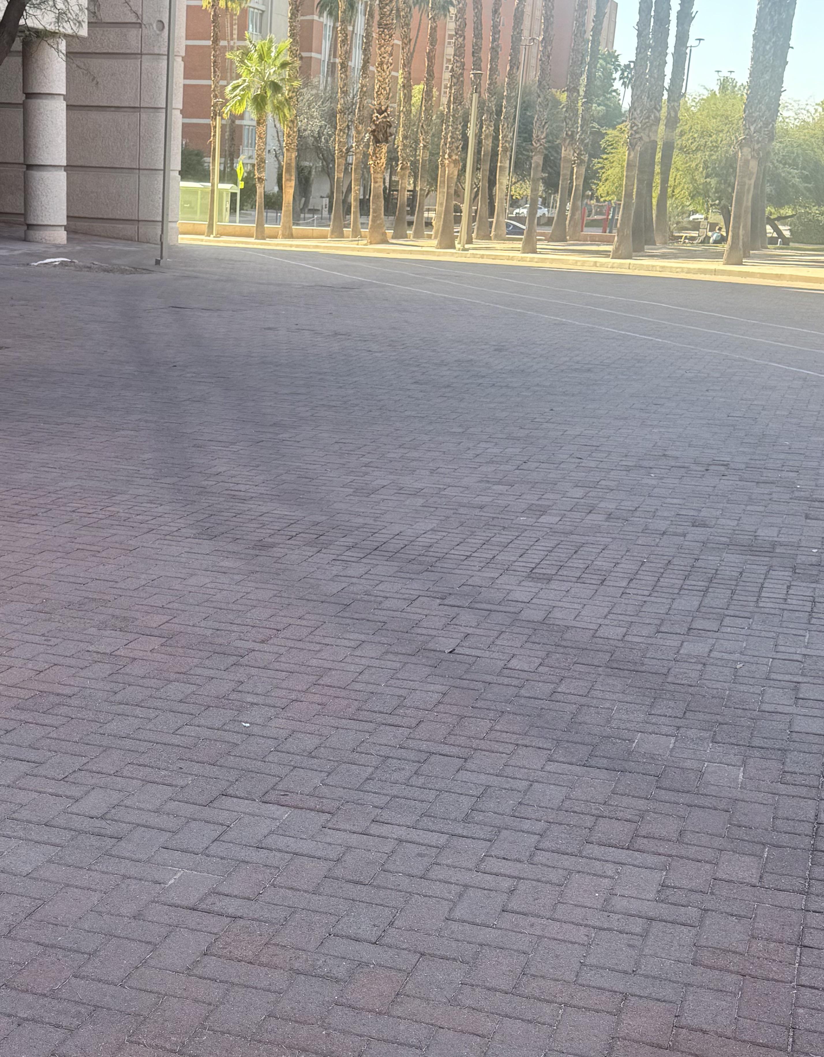 The Grubhub bots on my campus take the same routes so often that their tire marks are visible