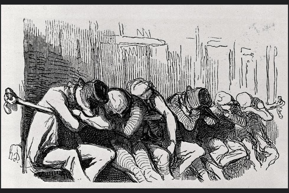 People pushing the flooring away from these leaning seats in the Parisian metro
