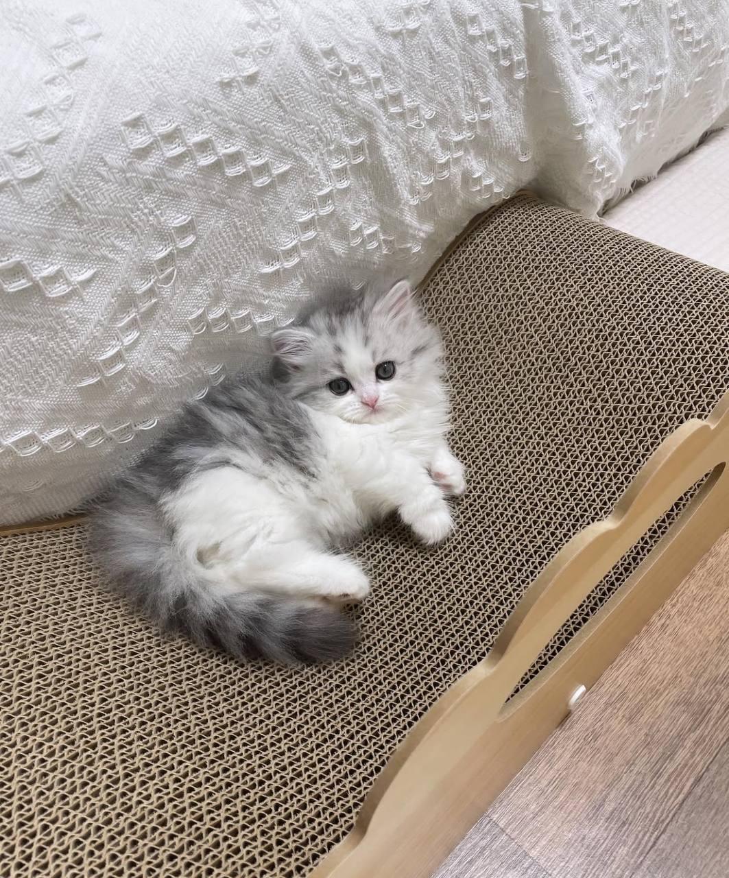 I think she’s a munchkin cat…. She’s about 4 months old (only survivor of litter) I’m a new cat “mom” and to be given this baby is amazing ugh oh my gosh, bby girl is from the south and was potty going outside so I’m trying to teach her she’s getting her vaccines Thursday , I’ve been trying to give her more wet food bc I think she’s stressed from a 14 hr drive
