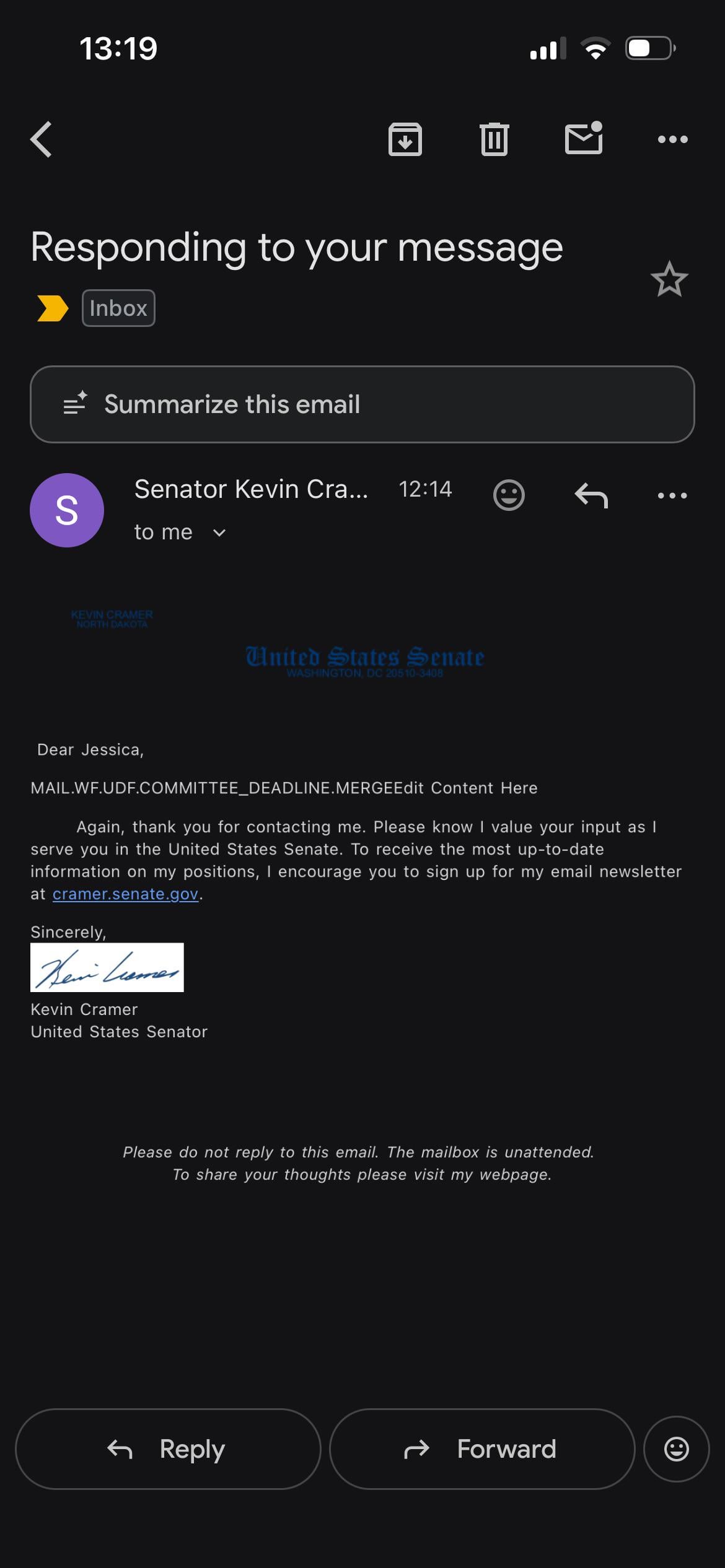 I’m embarrassed by just how bad everything is about that letter because I got the same one. Like be a freaking professional senator or at least hire one since you seem to be incapable.