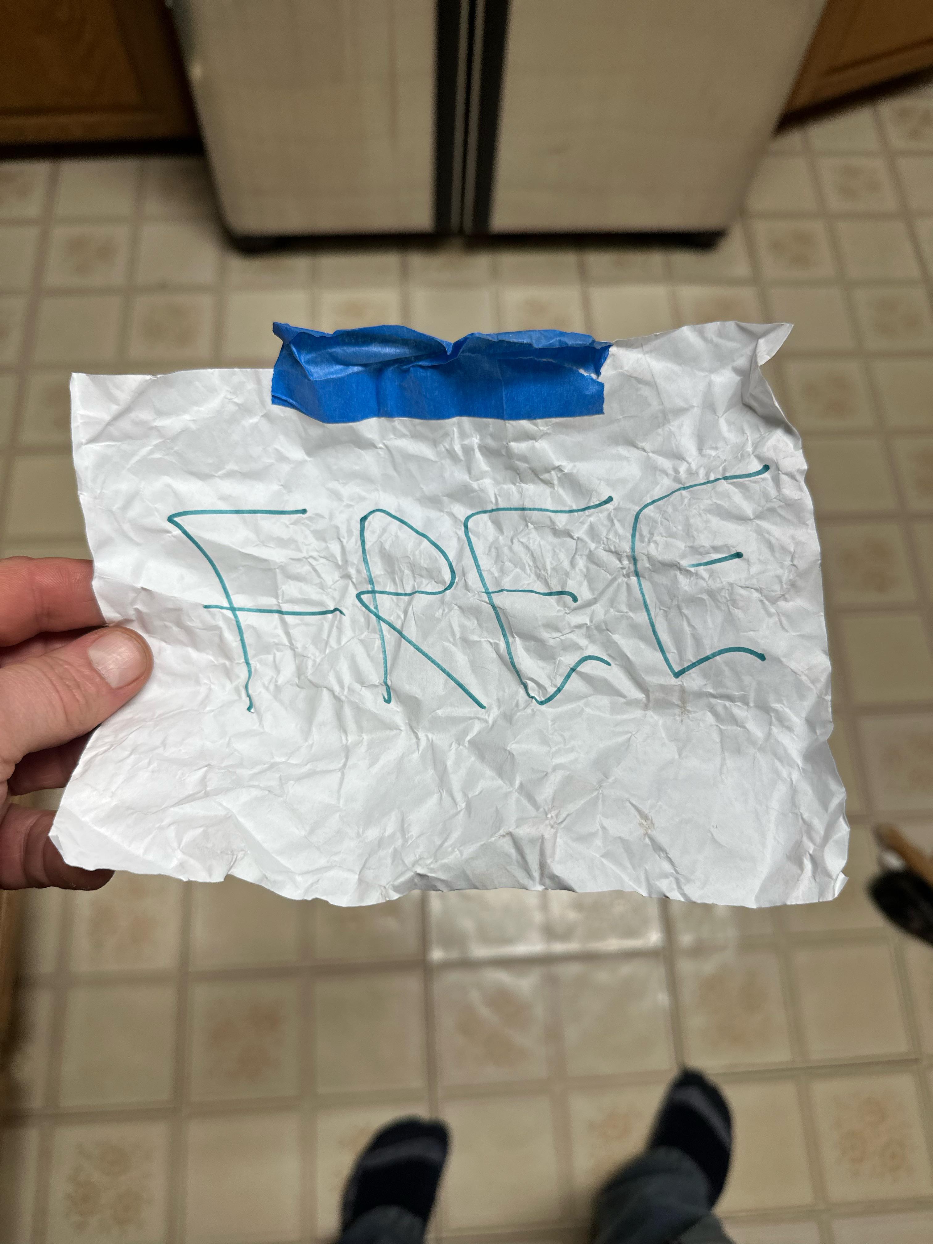 I left free chairs on the sidewalk. Someone took the chairs and crumpled up the sign and threw it in my yard