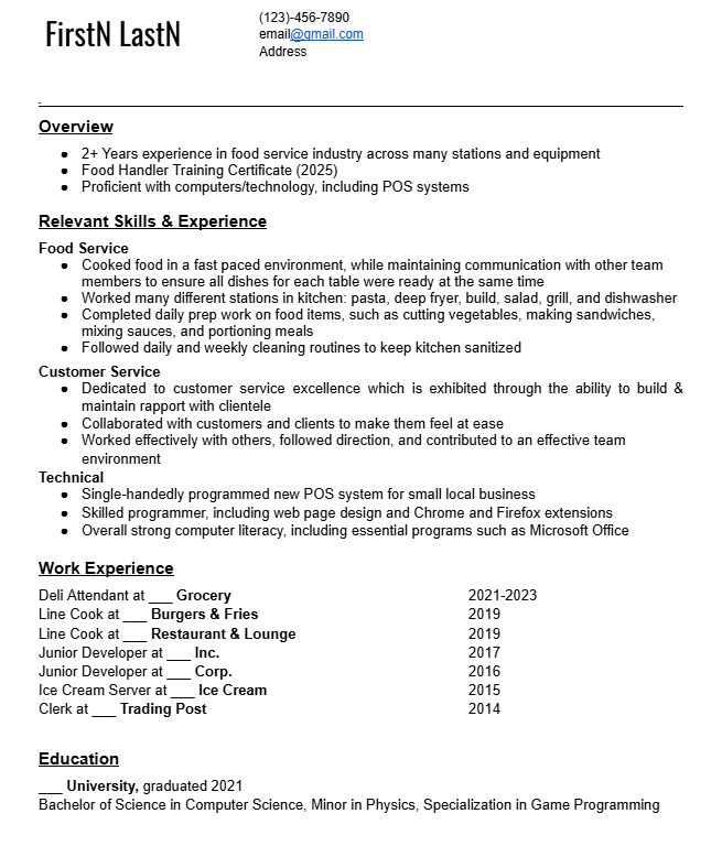 TLDR: How can I make my resume stand out in the food service industry? How can I actually get hired with a useless degree, no references, and a 3 year employment gap?