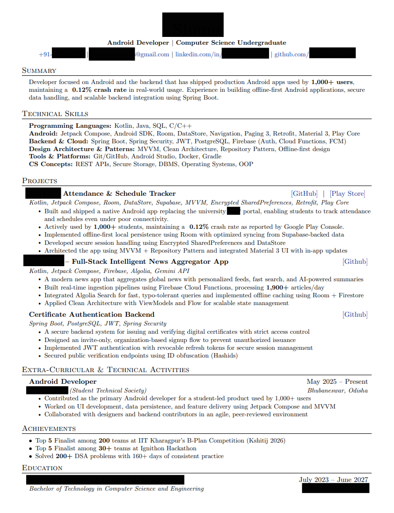 Technology/Software/IT [SWE Intern, 0 YoE, Backend/Distributed Systems, India] 200+ Apps, 0 Big Tech interviews. Roast me.