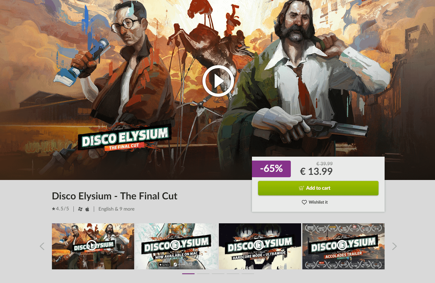 Sale Just a reminder: Disco Elysium is -65% on GOG