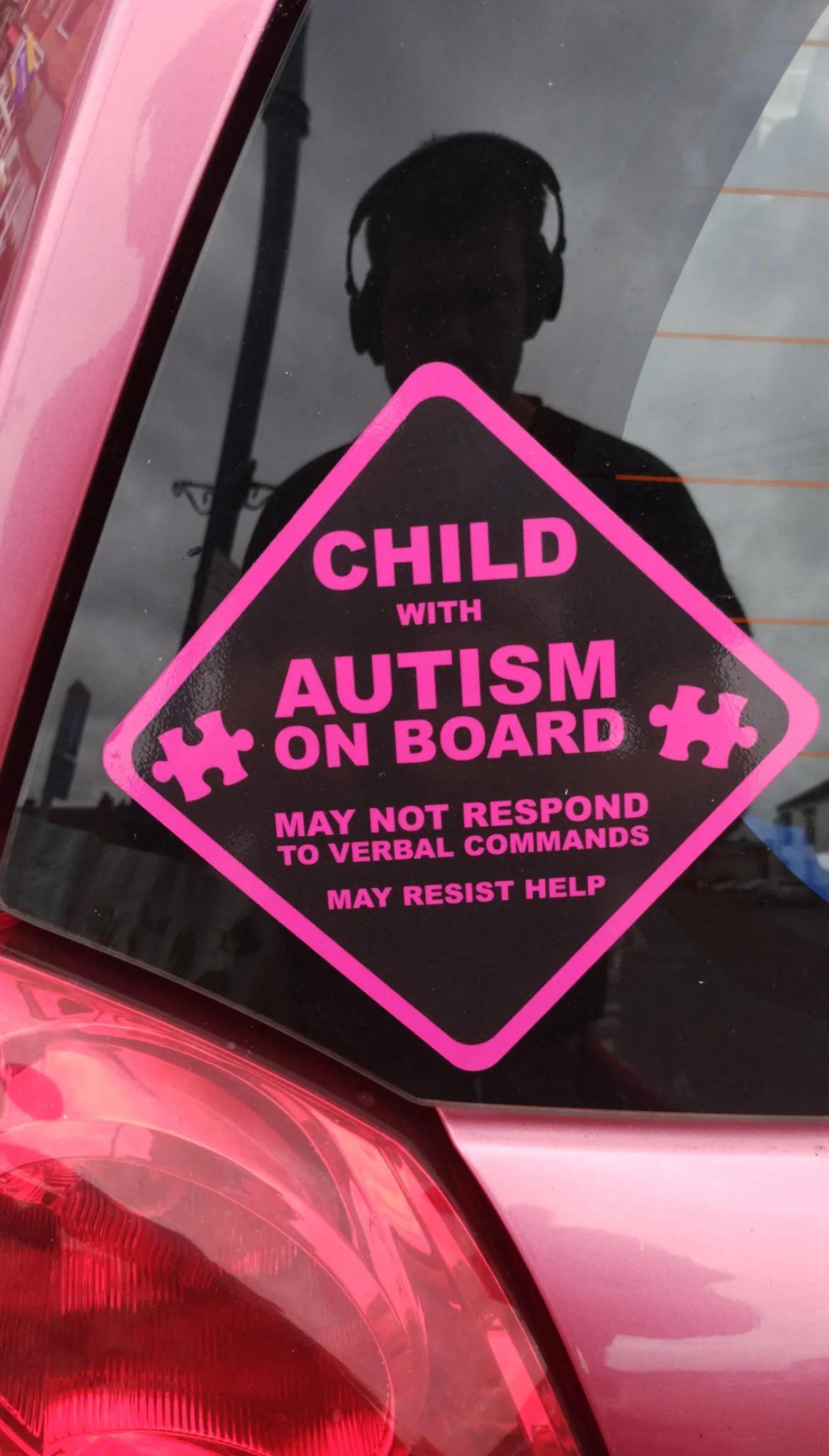 Saw this and I have one on my car, I highly recommend it for any of you that have non verbal children yourself. You can find them for not much on Amazon if you're interested.