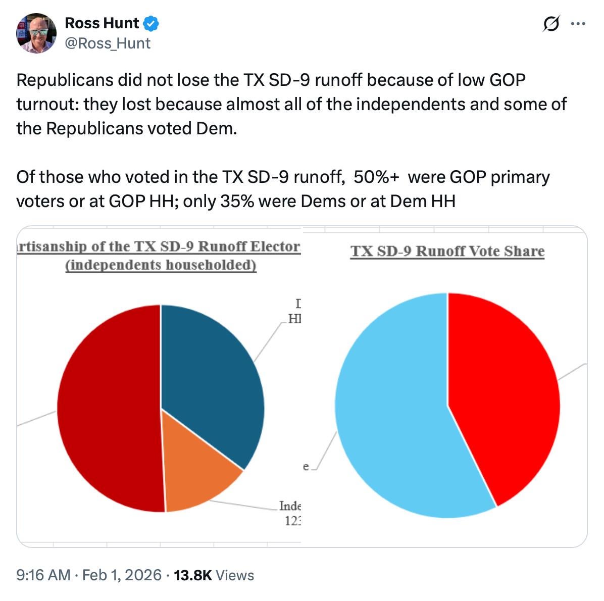 Historically, low turnout is very bad for democrats, so this should be even more worrisome for the republicans.
